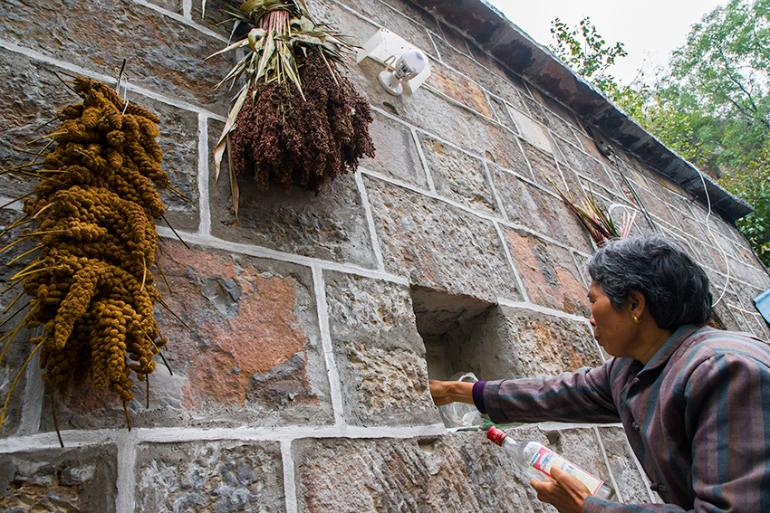 如今,这里修通了10公里的旅游公路,建起了6.5公里的峡谷步道,成为一个免费景区。走进这个小山村,这里渐浓的秋色,淳朴的民风,山民原汁原味的生活场景,令人们有回归大自然之感。(老人与他家的老用具)
