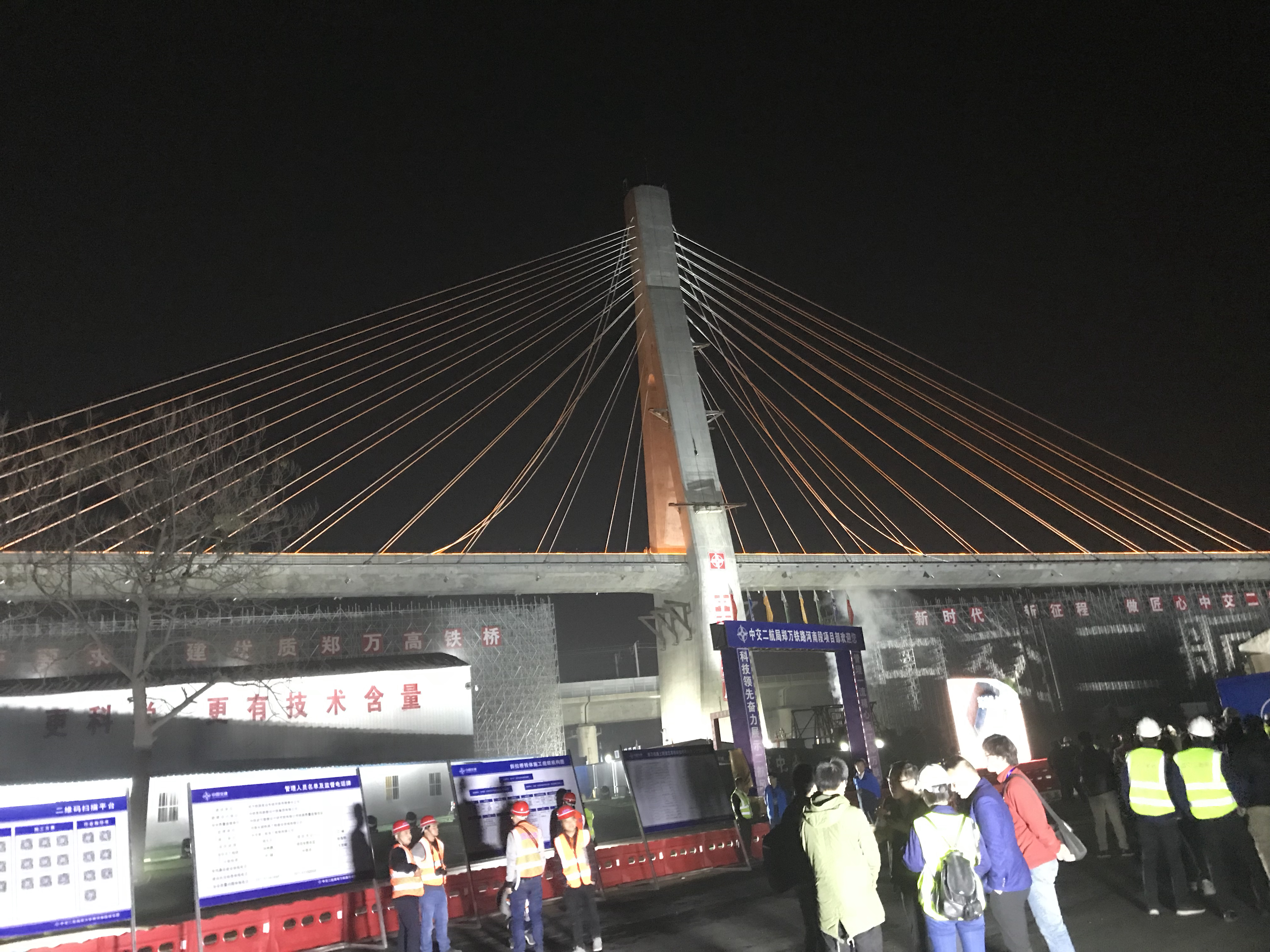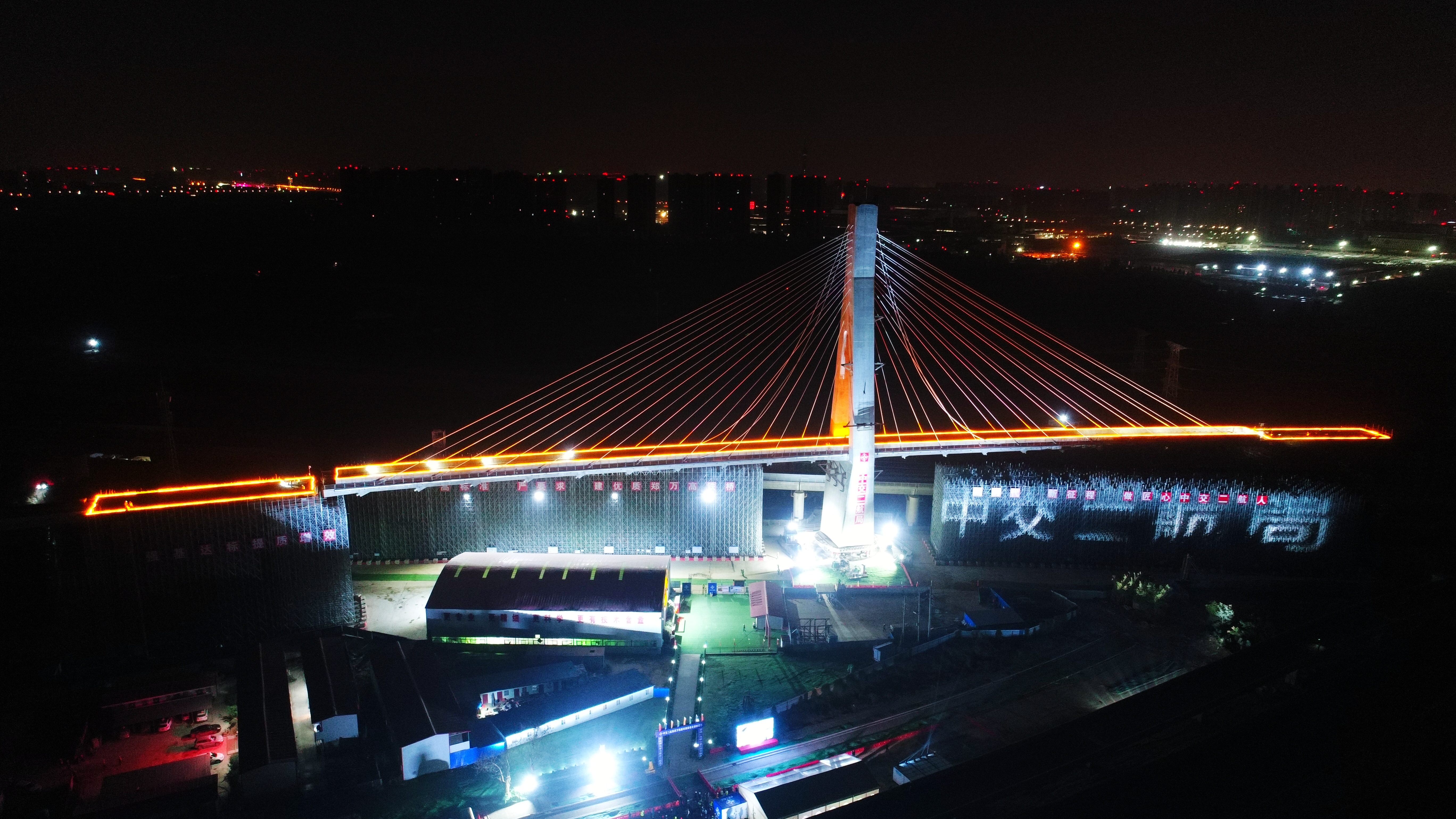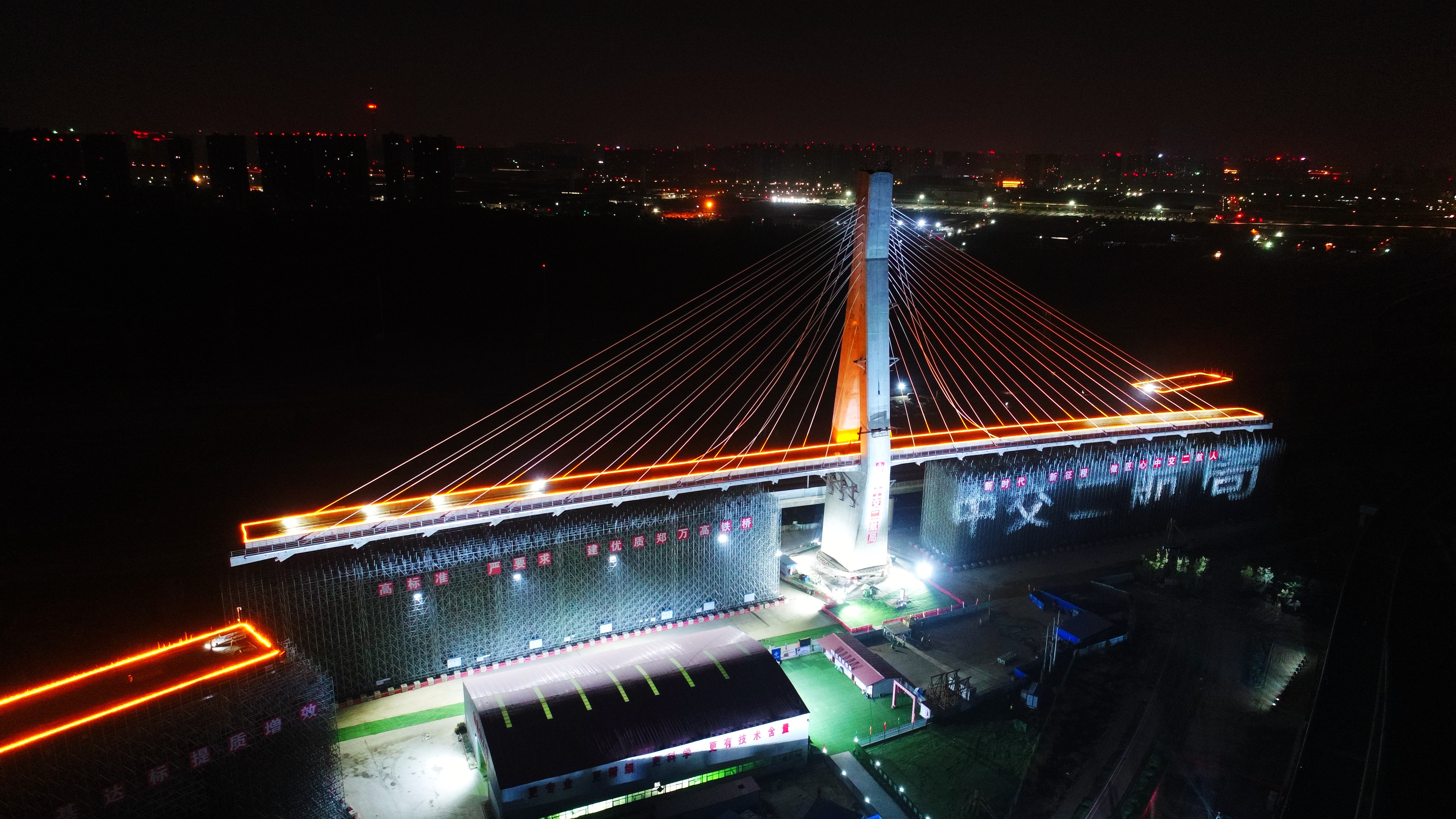 今天凌晨,郑万铁路"航母级"曲线斜拉桥成功转体。