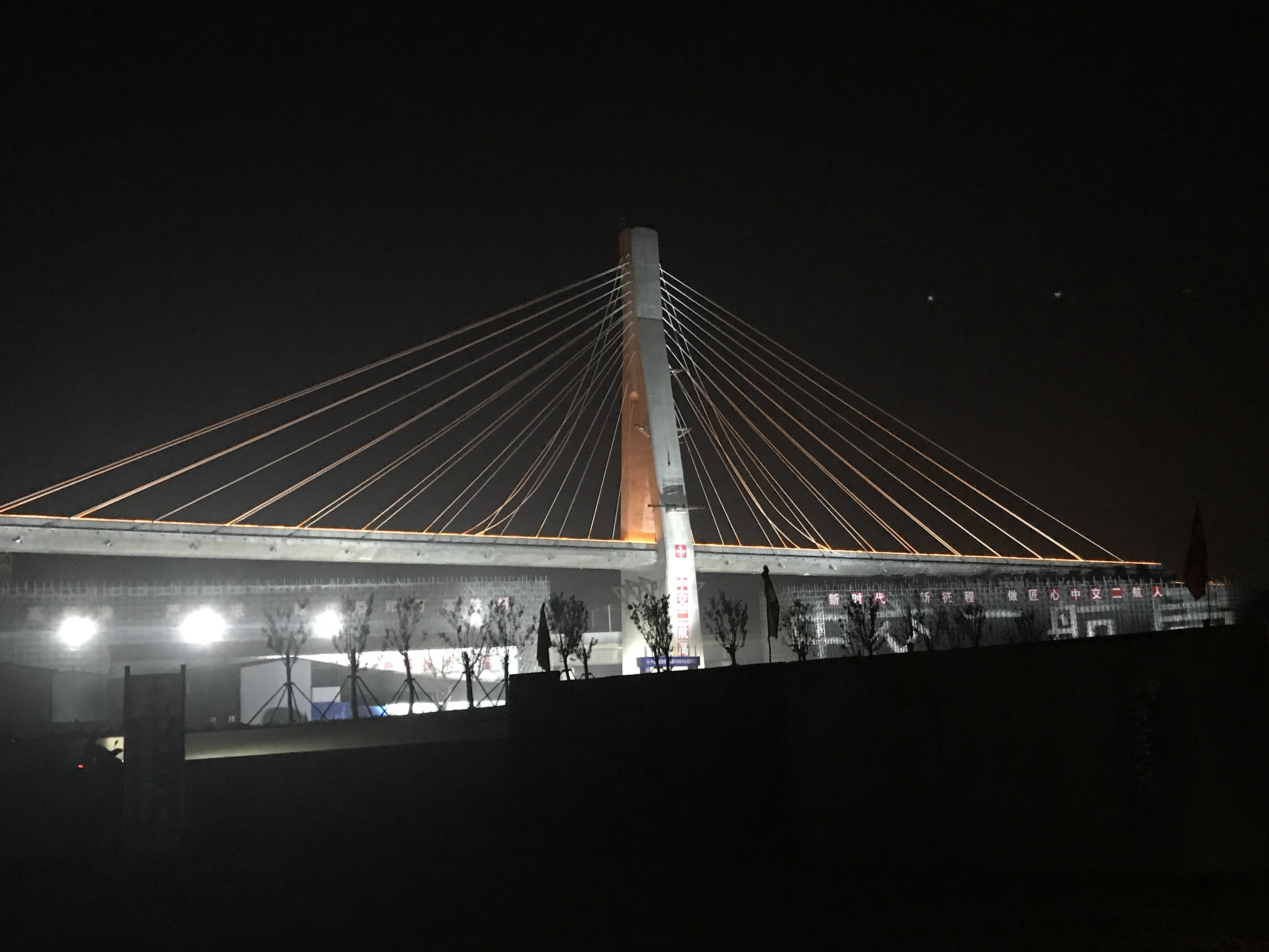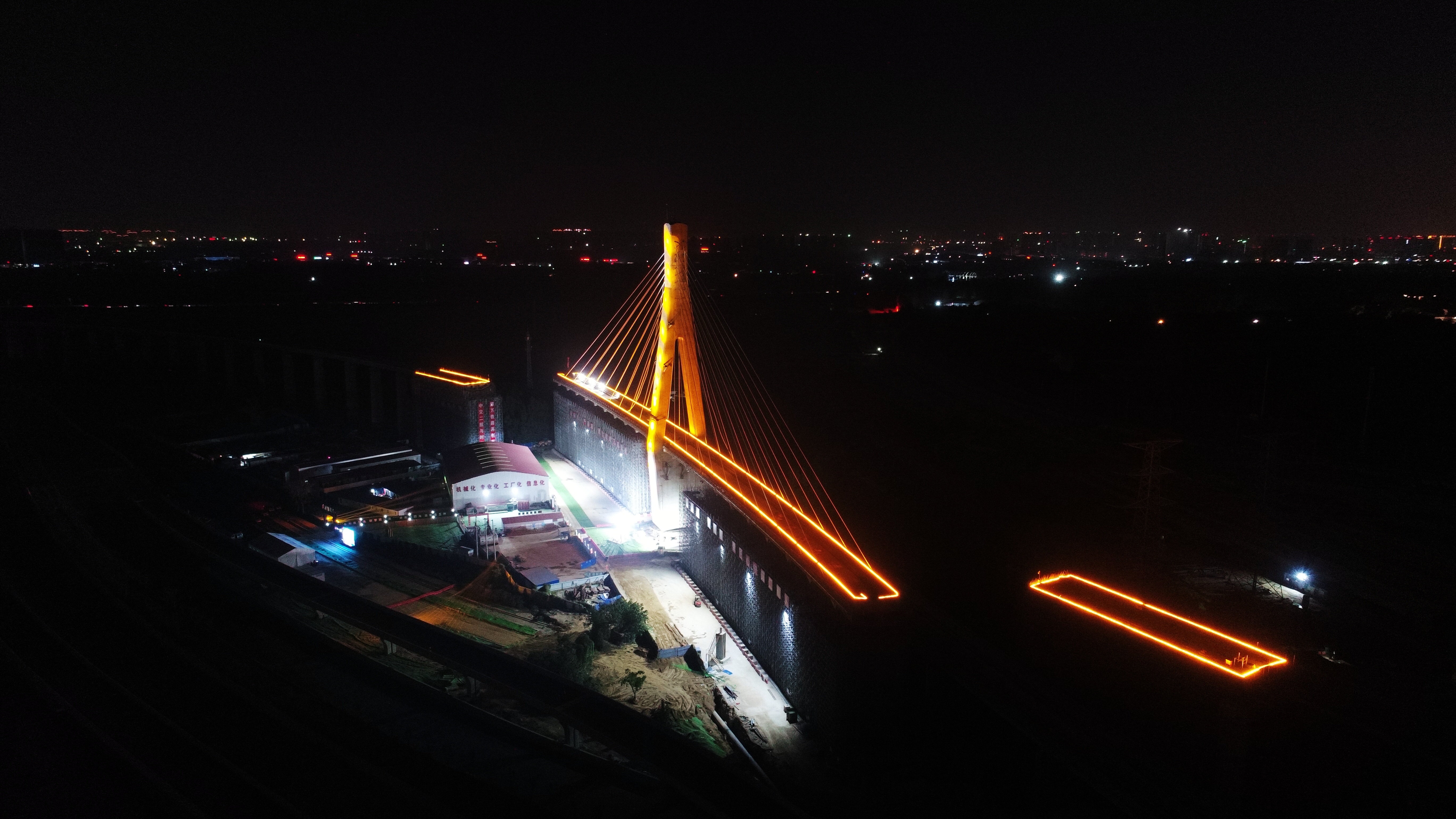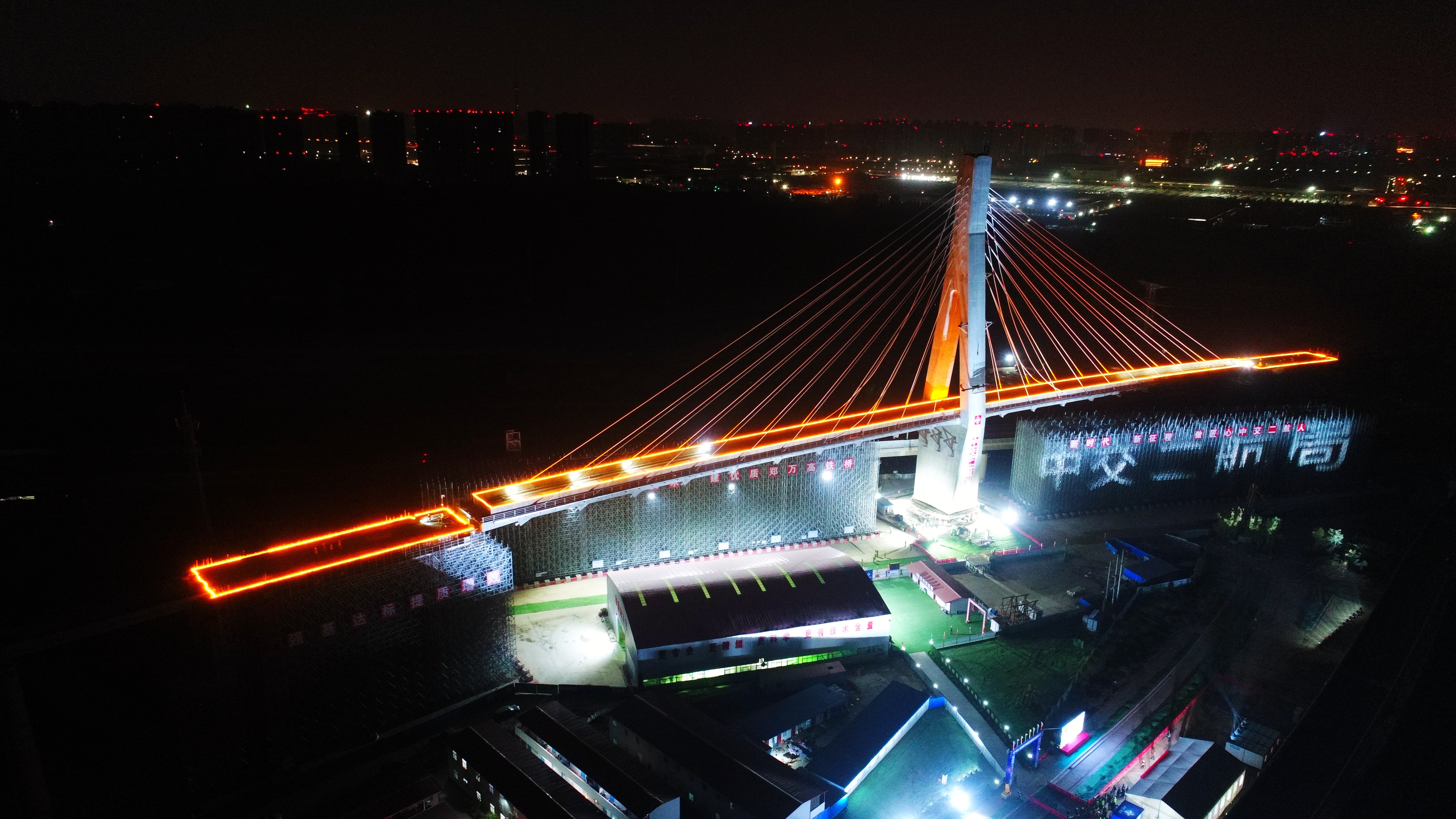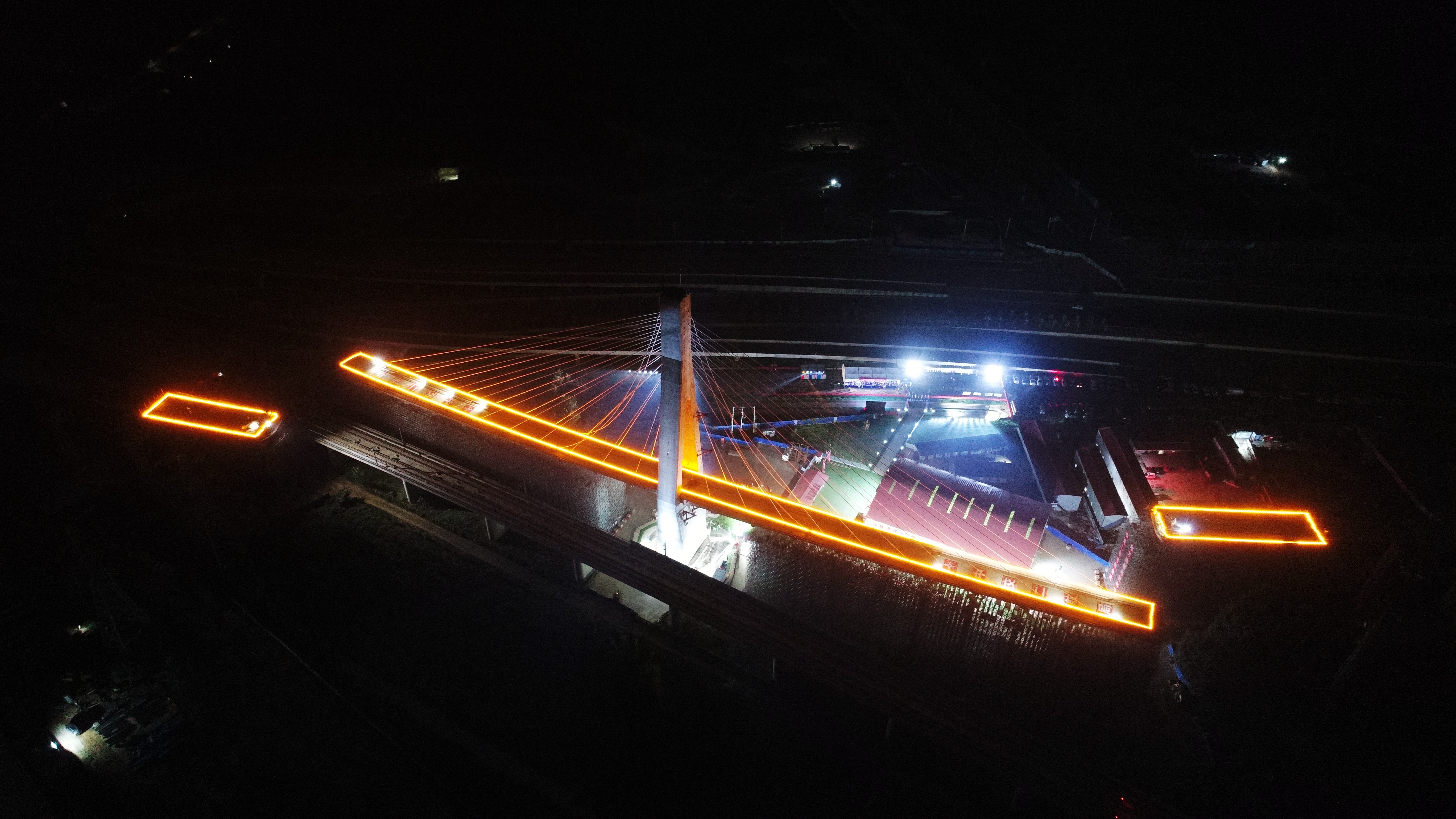 今天凌晨,郑万铁路"航母级"曲线斜拉桥成功转体。