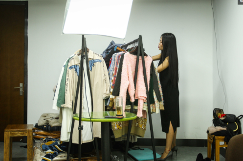 每天直播开始前,郭天旗要把直播中要试穿给粉丝看的衣服准备好。