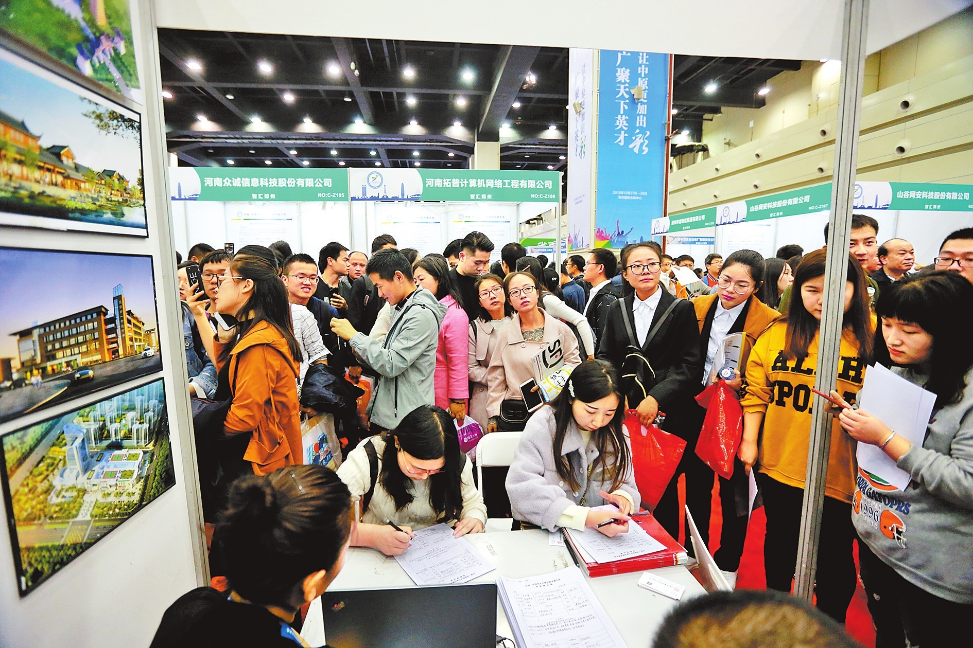 10月27日,中国·河南招才引智创新发展大会在郑州国际会展中心举行。省直相关单位和18个省辖市也都开展了专场招才引智活动,4500多家用人单位提供6.6万多个人才岗位需求信息。⑨6