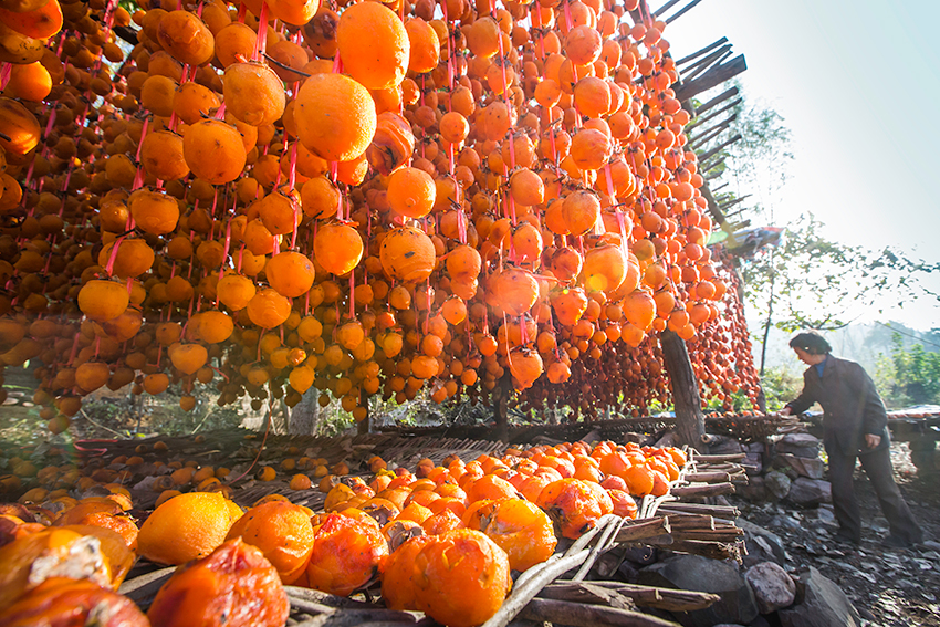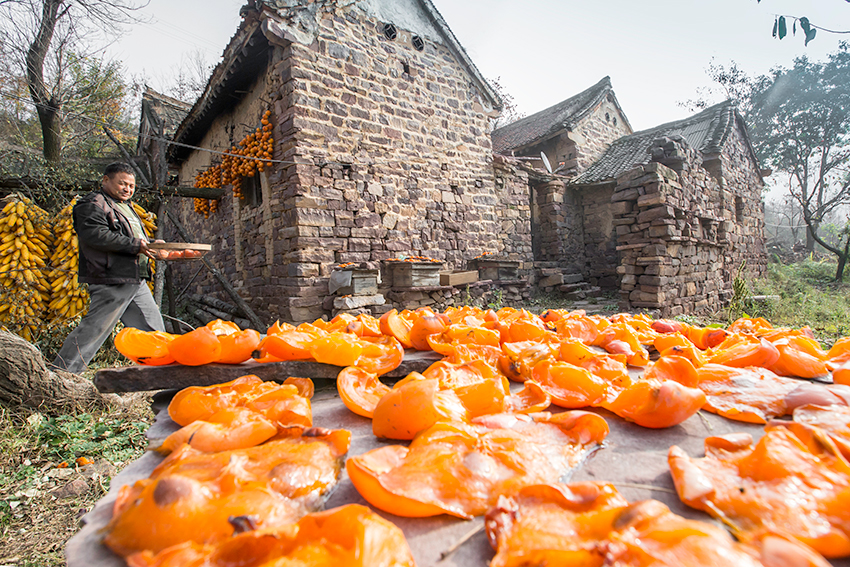 山村人晒柿忙