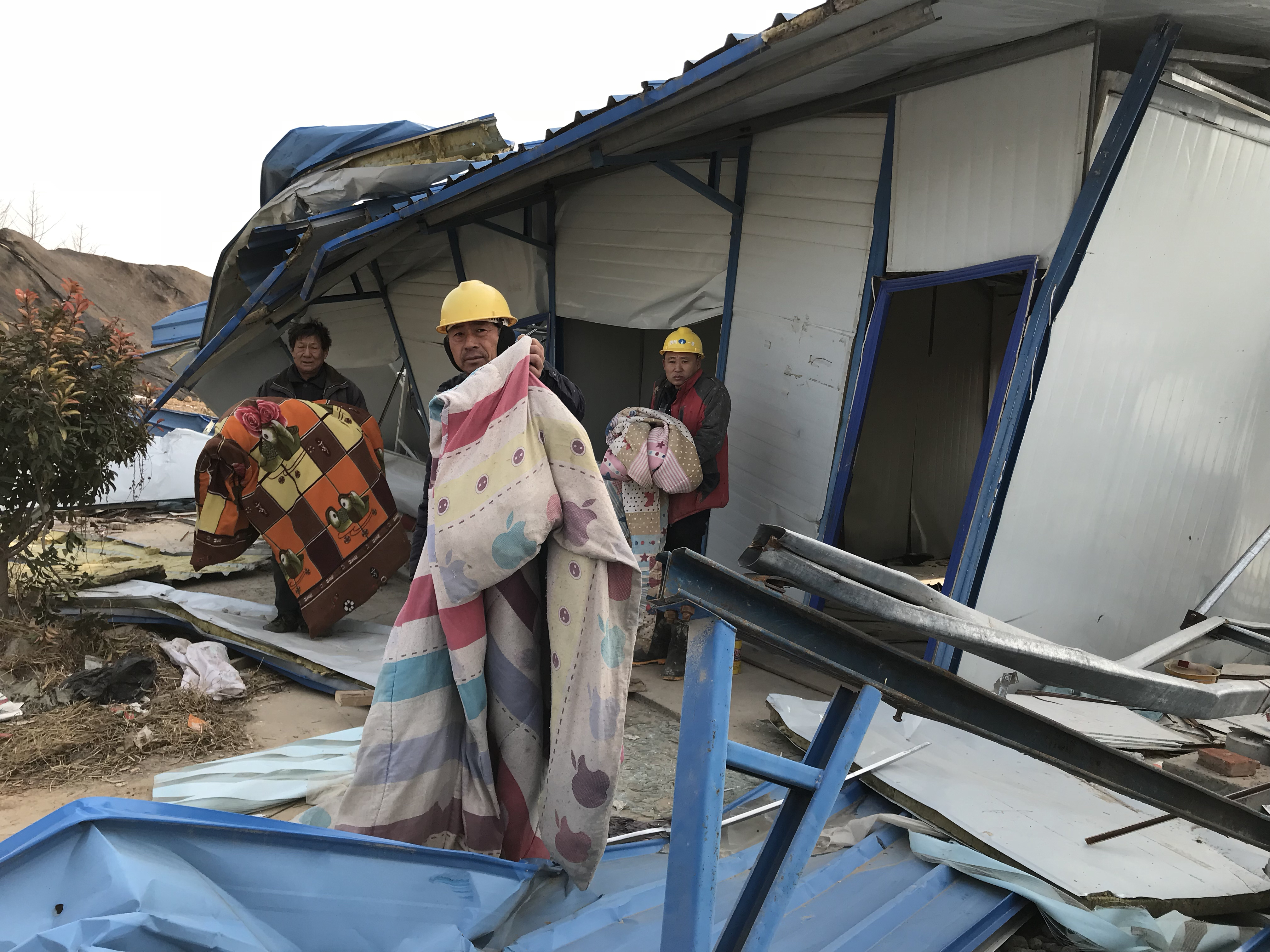 来自商丘的农民工尤毛方告诉记者,他在工地做木工活,11月30日中午下班回到宿舍时,看到整排宿舍变成了废墟,心里别提多愤怒了,因为自己的的衣物、被褥和财物都压在废墟里,一些值钱的物品已被捡破烂的拿走,让他和工友都受到了不同程度的损失。