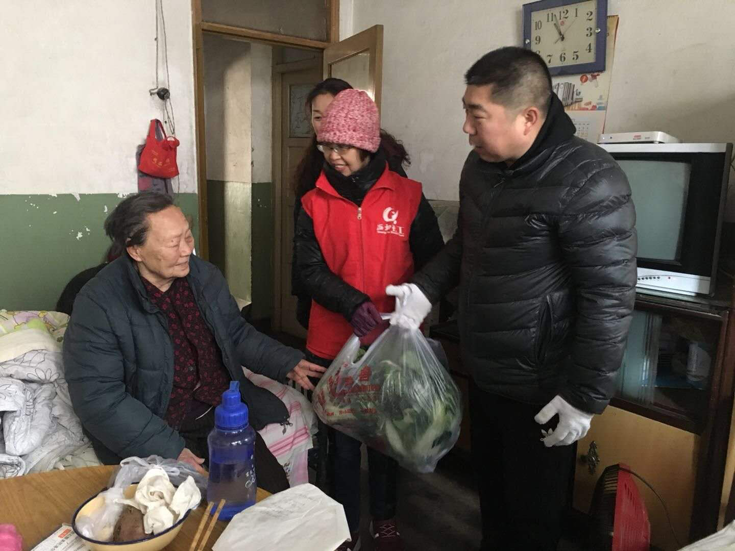 活动现场,社区工作人员与社工一起,向社区居民发放农产品礼包,每份礼包重约5公斤,内装有白玉萝卜和青白菜各一棵,一位阿姨接过礼包后笑着对社工说:"真得谢谢你们呀,这么冷的天,还想着给我们发蔬菜,辛苦你们了。"