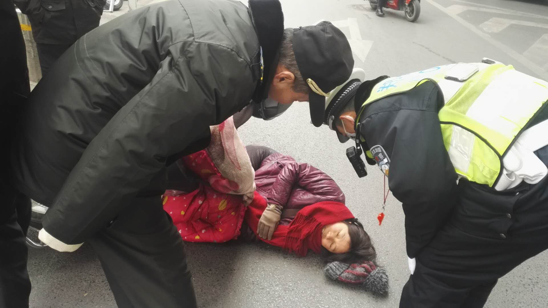 在交警、巡防队员和围观群众一遍遍的呼唤中,女子终于醒来,但是睁开双眼却说不出话来。看女子躺在路边来往车辆较多,比较危险,队员和交警合力将她抬到路边。