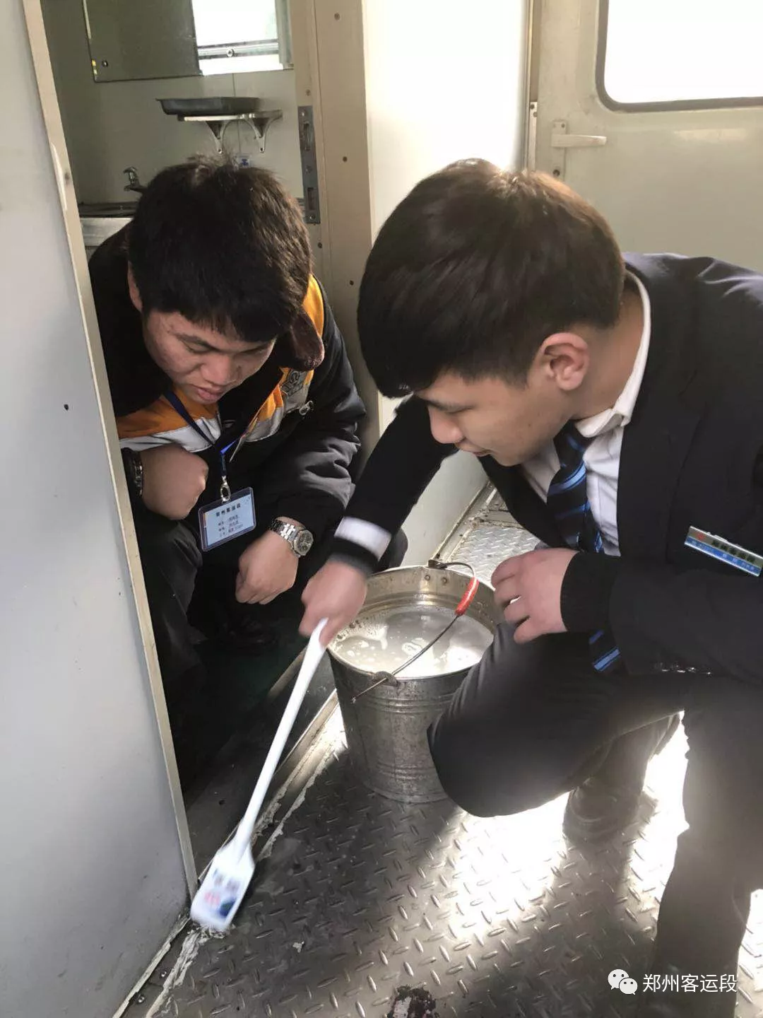 今年春运,郑州客运段杭州车队临客一组担当新乡到上海的K4045/6次列车,这是春运加的临客。为了补充人员的不足,集团公司从新乡机务段抽调部分职工分到杭州车队跑车,因此,这16名在机务段学火车司机的年轻人被分到杭州车队临客一组,今天是他们上岗第一天,从新乡赶到郑州车库装车,为新编好的临客车底上卧具,突击车底卫生。