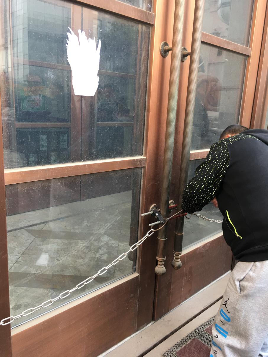 2日一早,大河报记者跟随郑州市中院执行干警来到现场,大门被几把锁锁死,玻璃门上,贴着法院今年3月份张贴的一张限期搬离公告,已经被谁撕去半边。开锁师傅用了一番功夫,才分别打开了侧门及正门的锁。
