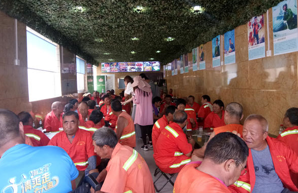 七月流火,酷暑难耐。7月28日上午11点时许,郑州室外温度超过40度,而在郑州三全路与花园路交叉口西南角一饭店里却凉意飕飕热闹非凡,记者走近店内,看到食客是全部身着工装的环卫工老人以及残疾人士,大家欢聚一堂,大快朵颐。