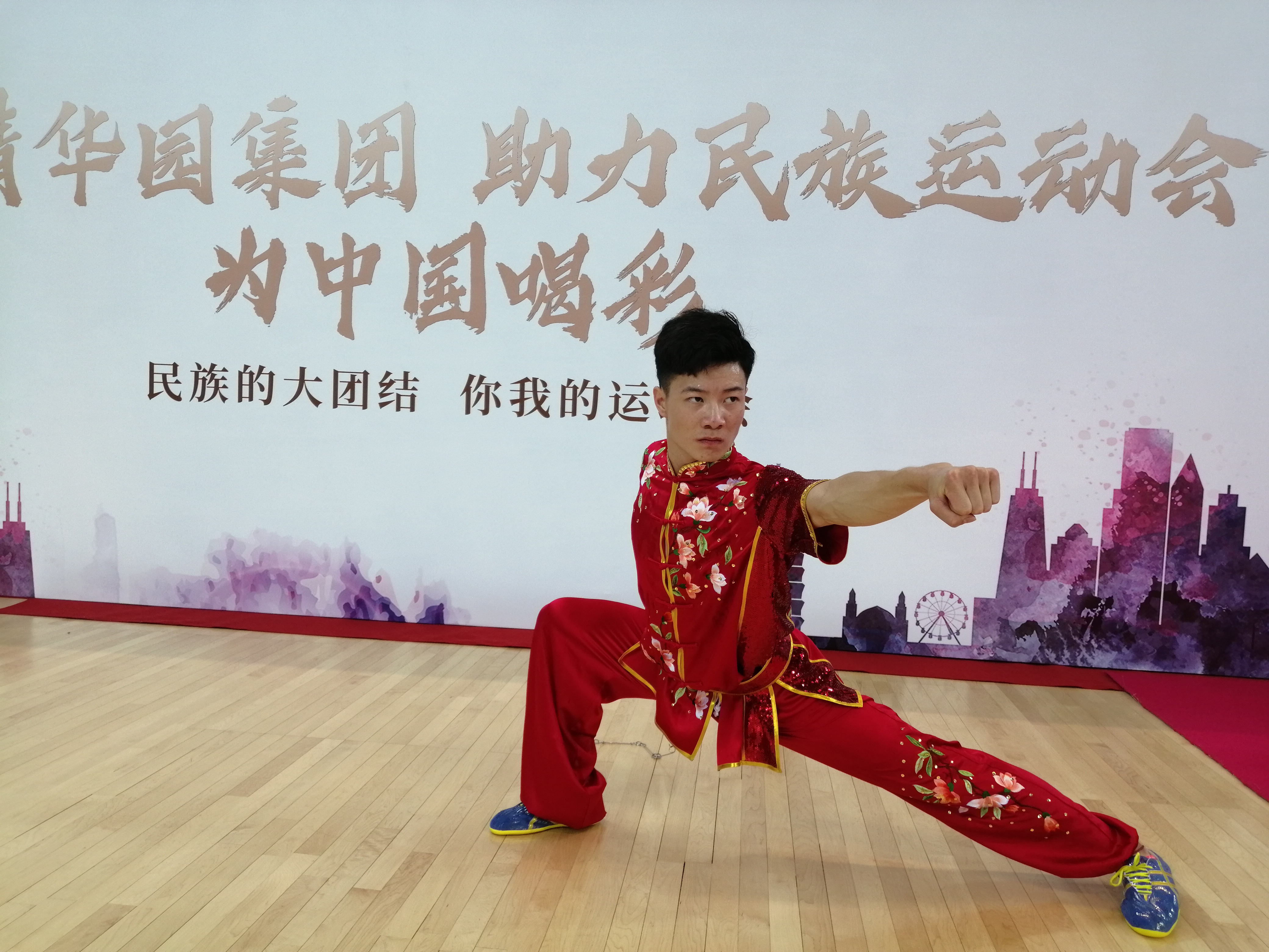 从3岁开始习武的河南代表队杨辰光,展示的是流星锤软器械。其他选手大多都选择了双鞭或单鞭,杨辰光选择了技术要求更高的流星锤。他说,双鞭或单鞭从观赏性上来看更吸引人,但流星锤也不遑多让。 进入比赛场地后,杨辰光静立了几秒后,才展开一系列动作。他说,当时主要在冥想,将自己的状态调整到最好。当得知自己的最终得分为9.45分时,他说这和预想的有一定差距。不过,能和其他民族同胞同台竞技,切磋武艺,也体现了全国五十六个民族紧紧团结在一起的主题,他感到非常荣幸。