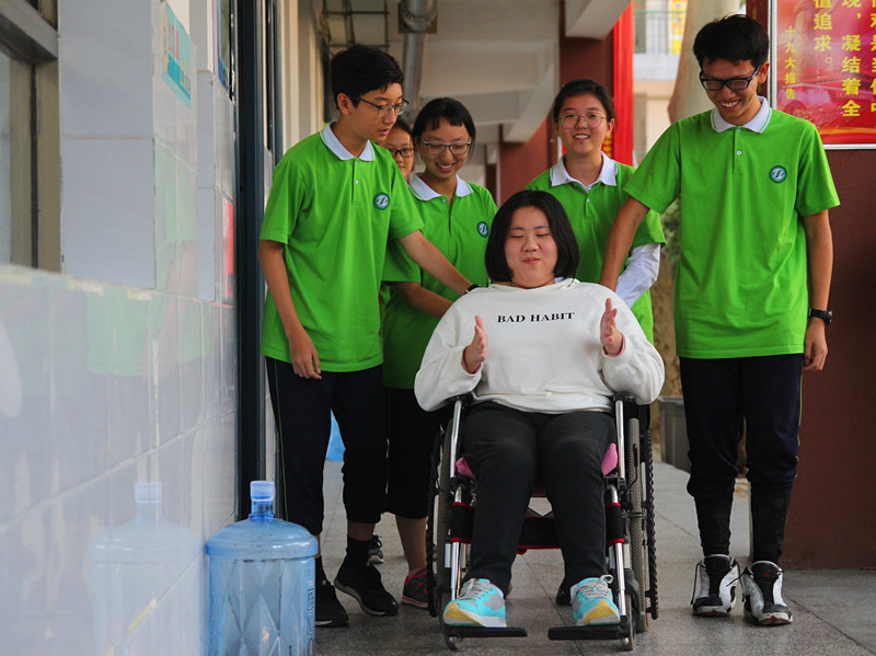 何翌宁和同学们相处的也非常融洽。刚开学时,她坐着轮椅进门,陌生的同学主动上前帮忙,原本放在门口的饮水机被同学抬到其他地方,免得拌住轮椅,很快新同学间的陌生感消除了。