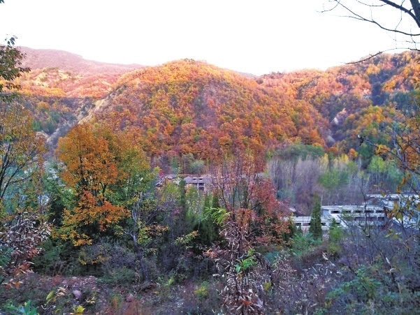 虽然已经刮过大风,但山上的红叶、黄叶依然不少,加上落在地上的不少枯叶,让这里的原生态景观更显情调。在阳光的照射下,山坡上的各种植物映射出五彩斑斓的色彩,使得这些本就壮观的山景看起来让人心旷神怡。