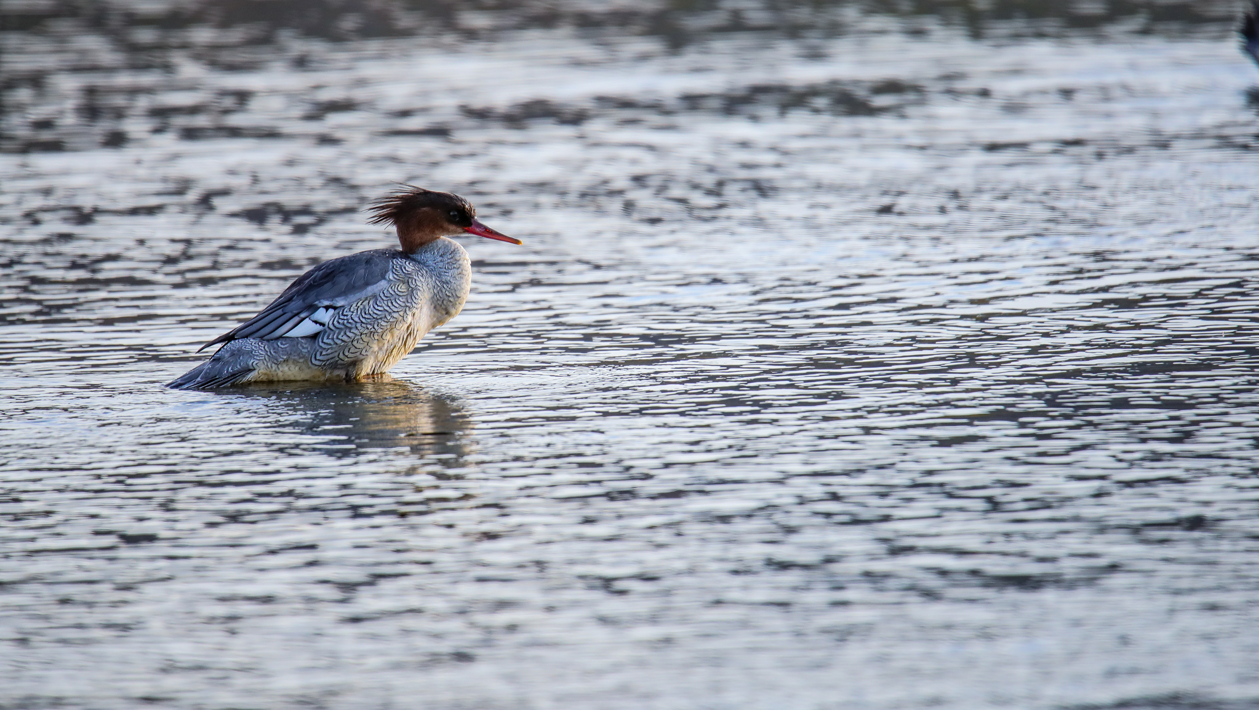 据了解,中华秋沙鸭是第三纪冰川末期遗留下来的古老物种、国际自然保护联盟(IUCN)红色名录濒危物种,同时也是中国一级重点保护野生动物,素有鸟中“大熊猫”之称。中华秋沙鸭对水域环境非常挑剔,喜欢在清洁的河流、宽阔的河道栖息觅食,有着“生态试纸”的别称。近年来,作为南水北调中线水源地的卢氏县,近年来持续加强生态环境建设,县域内水质不断提升,因而也吸引了众多珍稀鸟类频频出现。