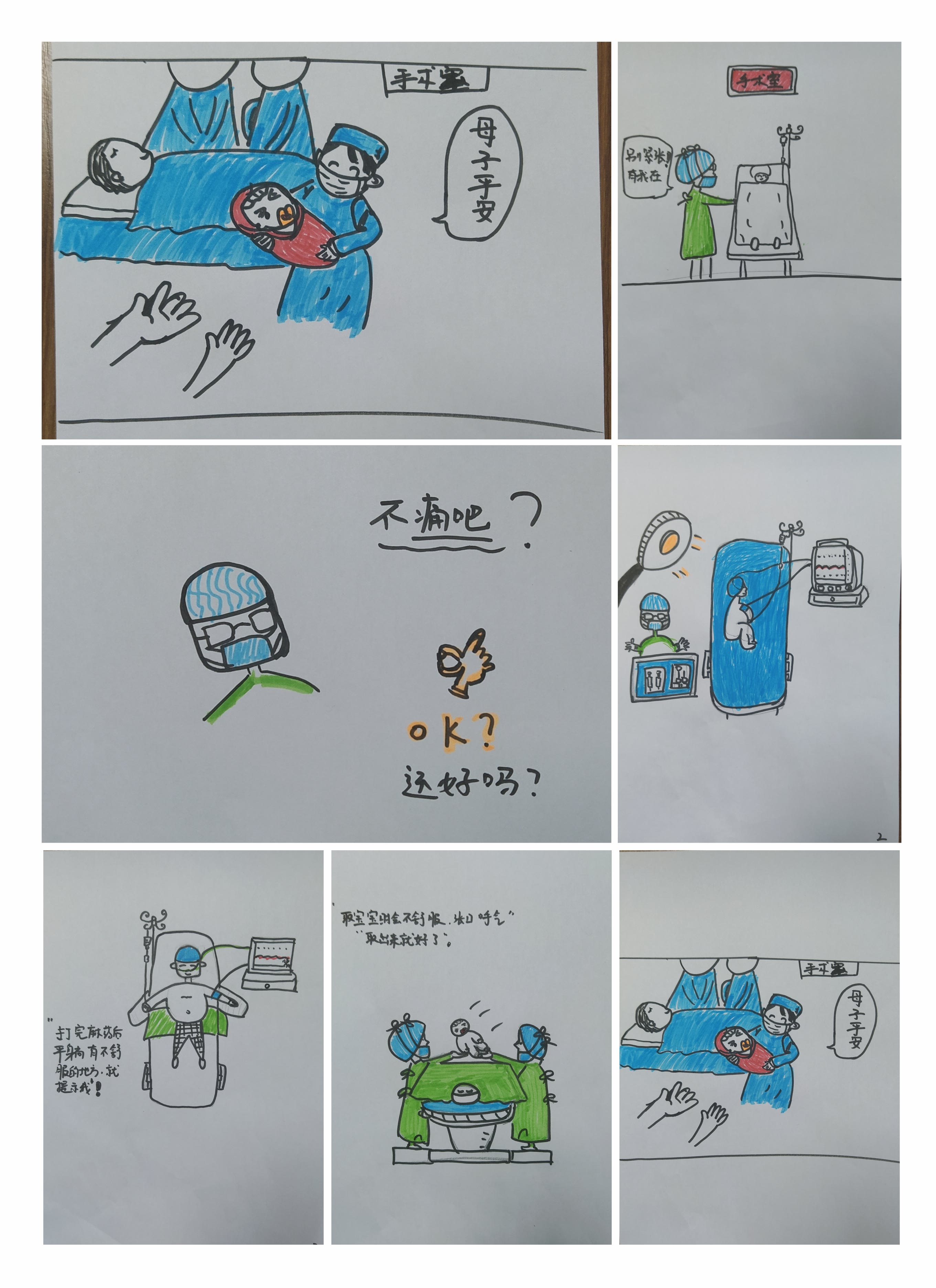 据周口妇产医院妇产科病区许淑荣主任介绍,聋哑产妇产妇李女士被诊断宫内孕39周,是她第三次行剖宫产。与小焦不同的是,李女士系先天性聋哑,不识字,这就没有办法用文字的形式进行沟通。为了缓解产妇分娩时的紧张情绪,周口妇产医院麻醉师及手术室护士画了生动的简笔画,与产妇进行交流,当日上午11时38分,成功为其剖娩一女婴。