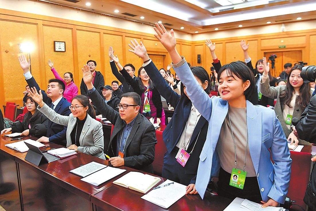 1月11日,出席省十三届人大三次会议的代表们在审议政府工作报告。河南日报记者董亮杜小伟摄