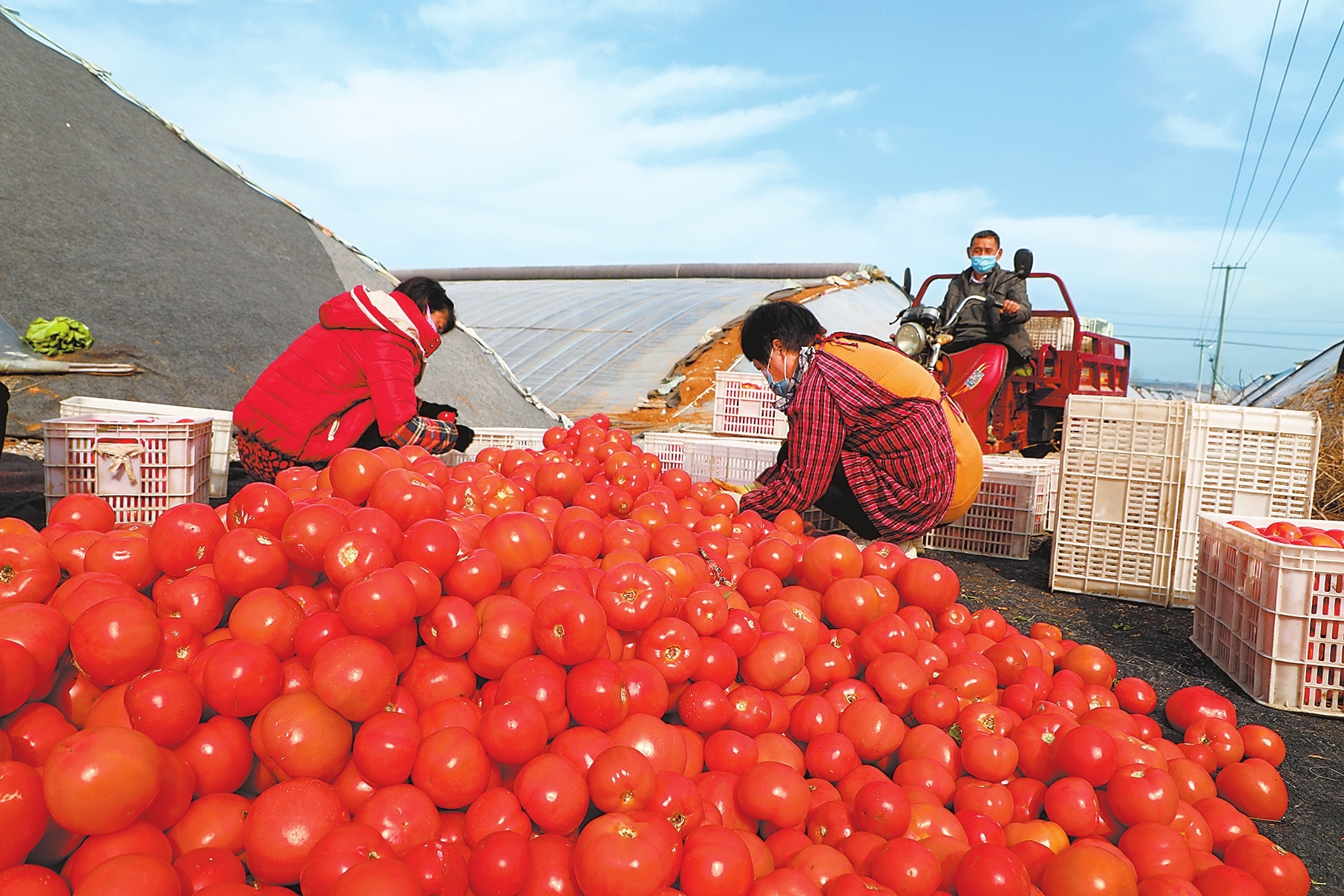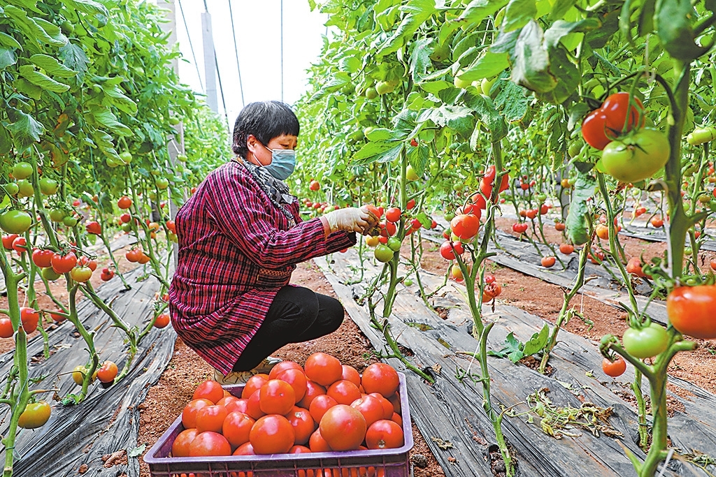 2月11日,渑池县天池镇奥仓现代农业产业园的工人在采摘蔬菜。该园区采取严格措施,保证了疫情防控与蔬菜生产的同步进行,保障了周边市场蔬菜的供应。邓志伟摄