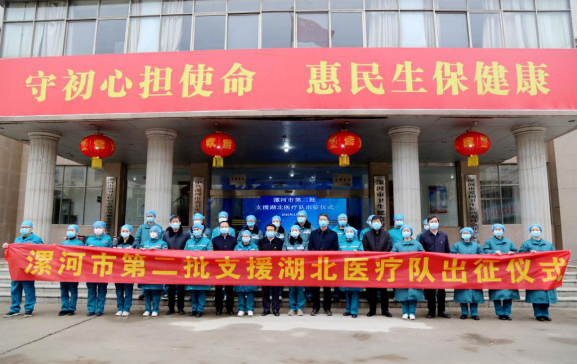 2月15日中午12点多,漯河第二批支援湖北医疗队出征仪式举行。