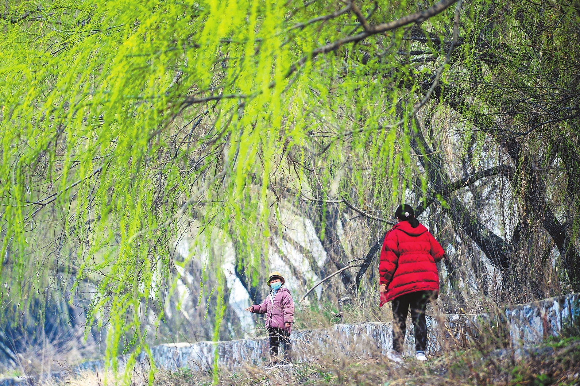 湿地,柳枝吐绿,处处春意盎然。孙凯摄