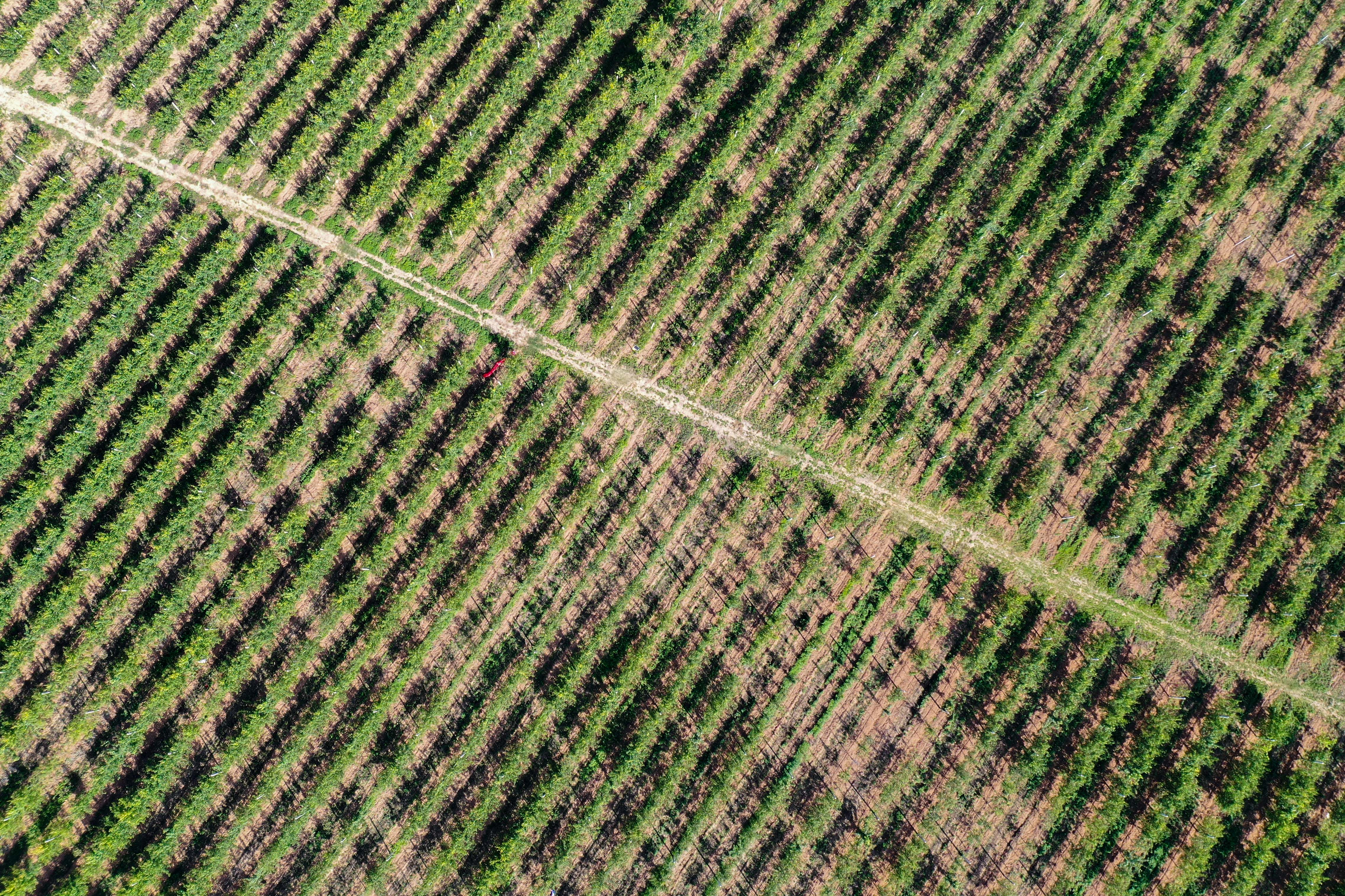 从空中俯瞰,关庙村的一处果园里整齐种植的金珠沙梨。