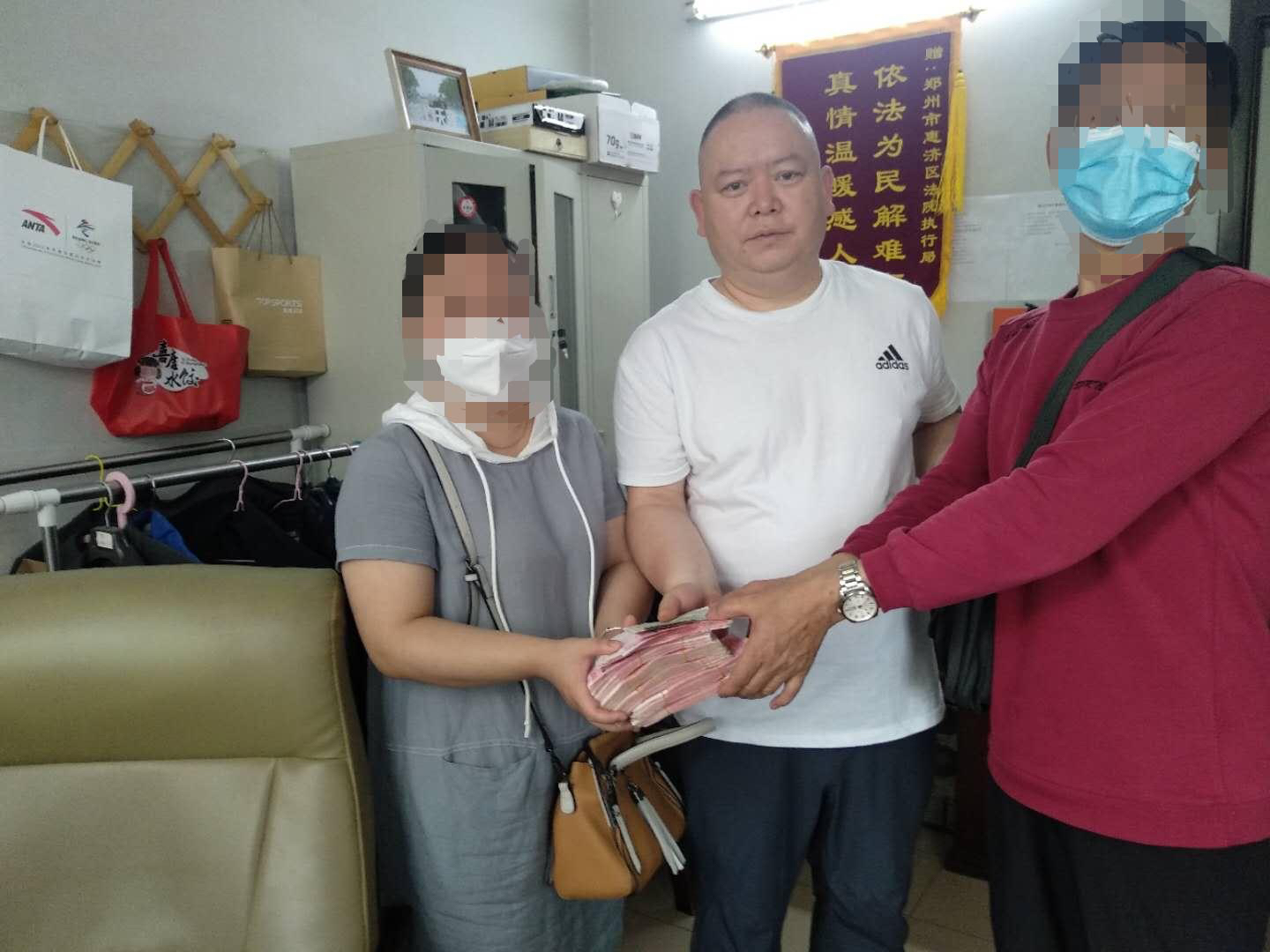 于是,执行法官决定从情理法角度入手,努力做双方当事人的思想工作,劝说他们各让一步、互敬互谅。此后,执行法官一方面对被执行人林毛反复宣讲相关法律法规,告知其法律对抚恤金分割的规定,打消其错误认知,同时向其详细阐明了拒不履行生效法律文书将面临的法律后果;另一方面又对申请执行人林华做工作,希望其能换位思考,不要因为5万余元影响了手足之情。最终,双方当事人被执行法官动之以情、晓之以理的劝导和耐心所感动,就抚恤金分割问题达成了调解协议,约定在6月16日前由被执行人林毛一次性支付5万2千余元,双方就本案再无其他纠纷。随后,被执行人林毛如约于6月16日到惠济法院履行了全部执行款,这才出现了文章开头的一幕。