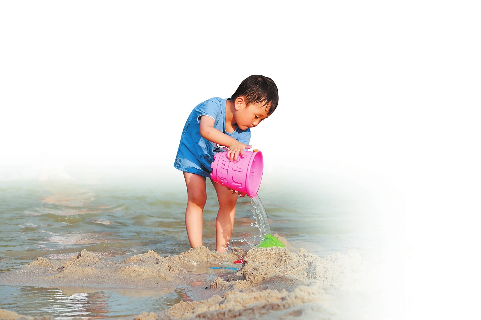 图②儿童在开封西湖岸边的银色沙滩上玩耍。本报记者聂冬晗摄