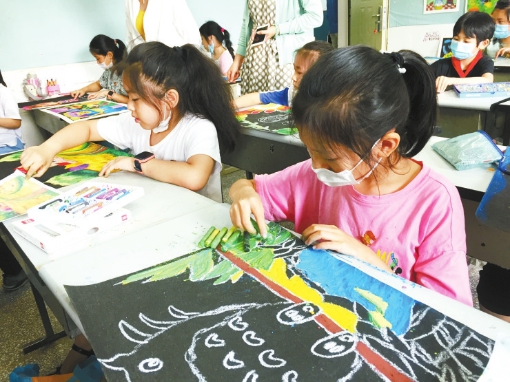 管城回族区外国语小学的孩子用画纸记录暑期生活的精彩瞬间