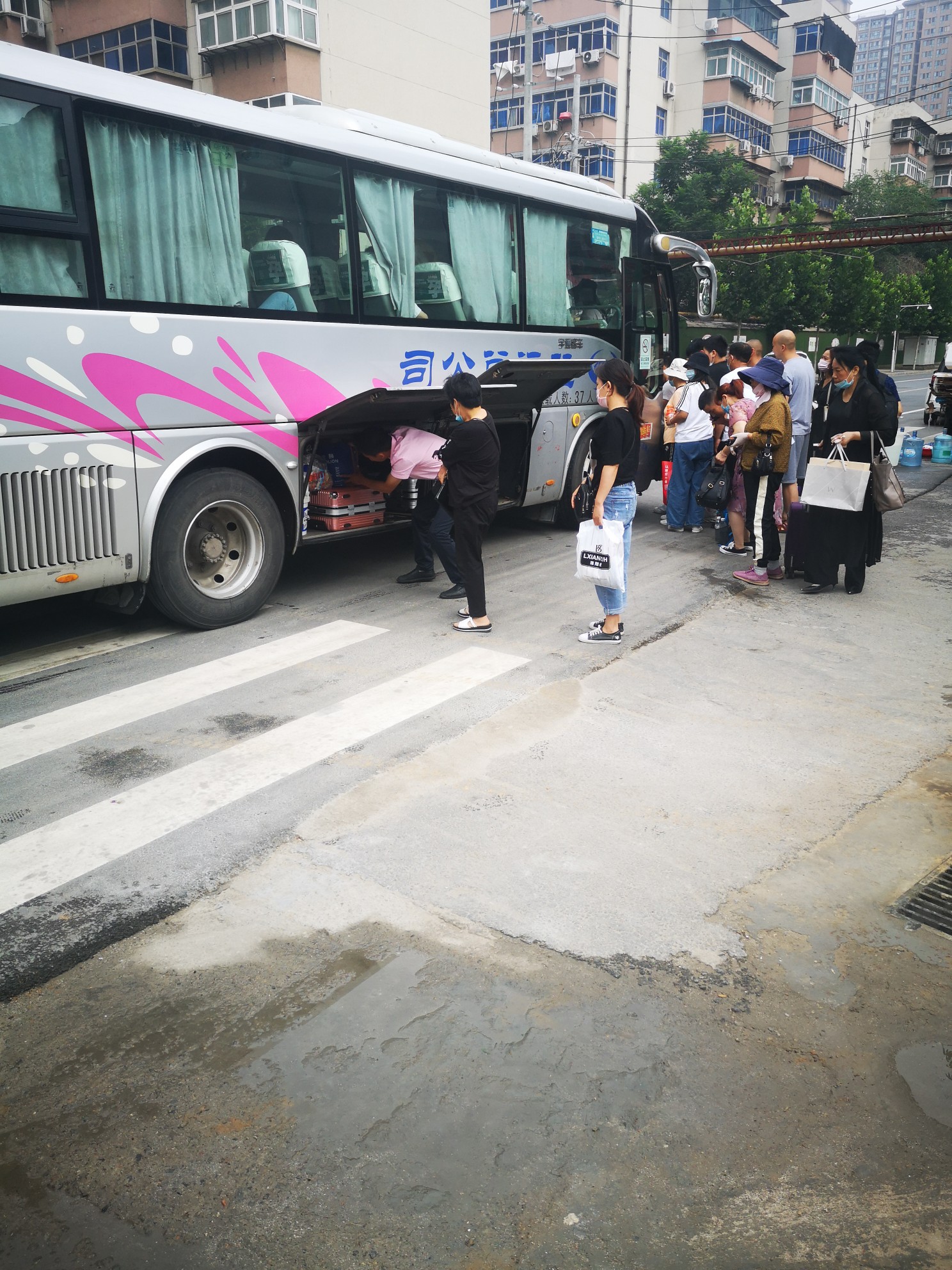 不一会儿,一辆车牌号为豫Q25019的大巴客运车停在了路边,乘客争先恐后上车,同样大家携带的物品没有进行任何安检。