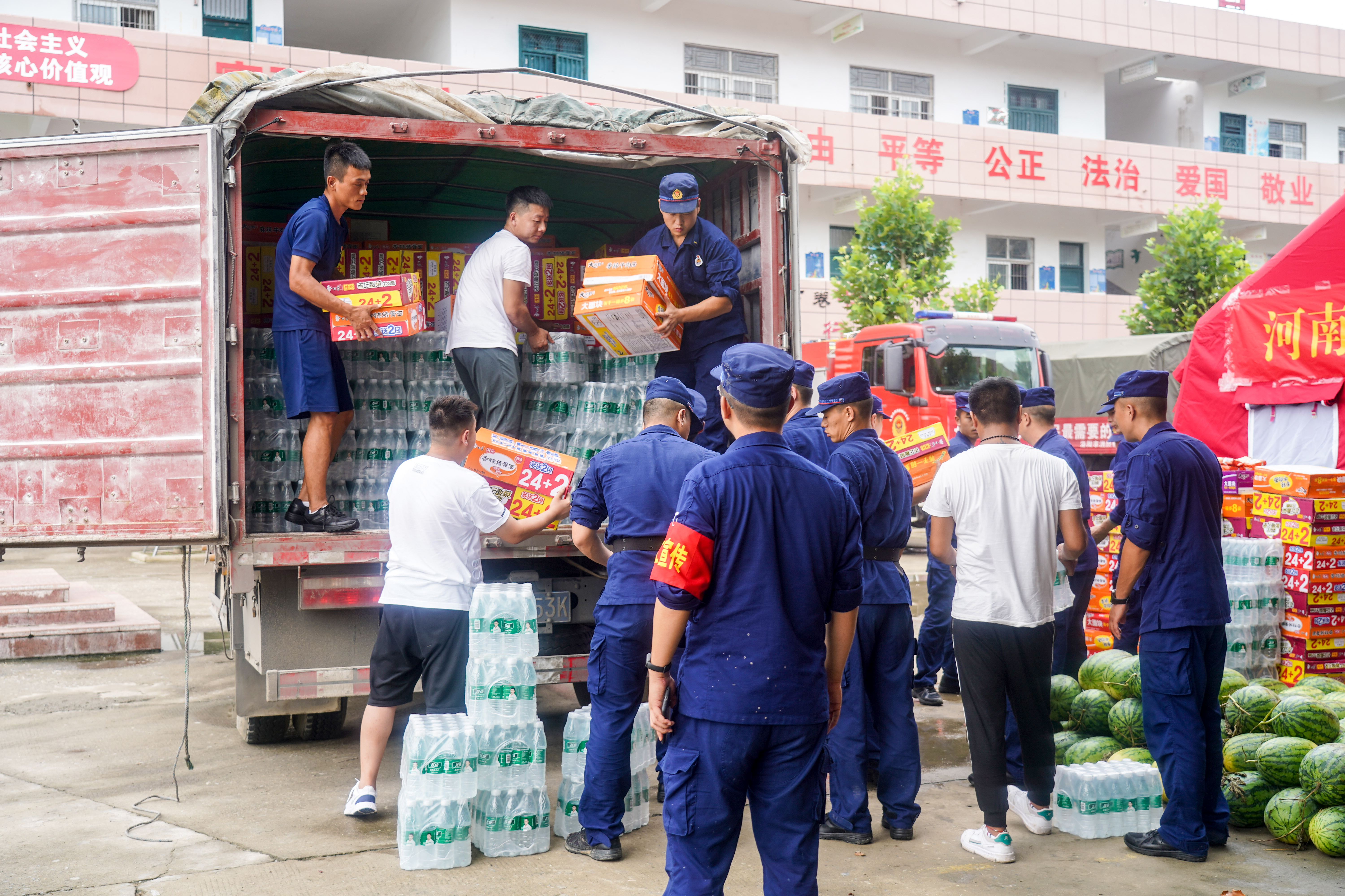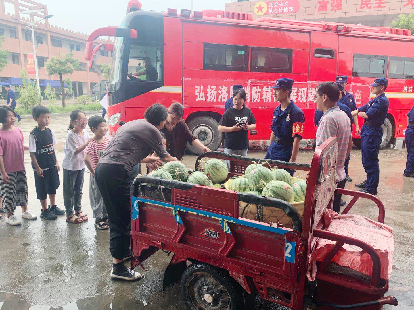 河南老乡、安徽群众争相给消防送西瓜、矿泉水