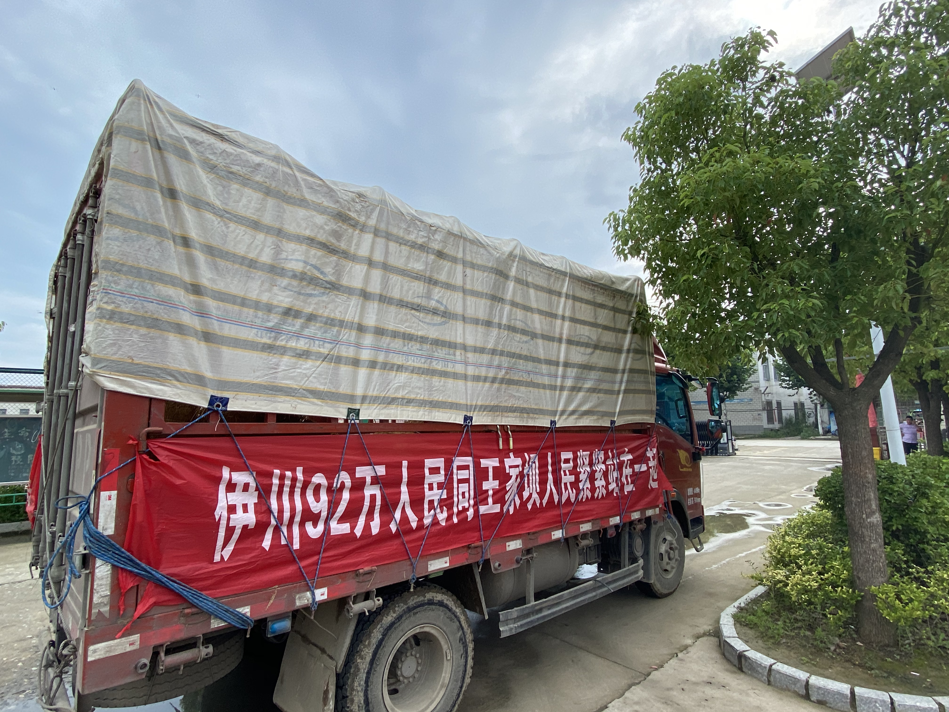 “伊川92万人民同王家坝人民紧紧站在一起。”一辆挂着这样条幅的豫籍牌厢货车驶入安徽蒙洼蓄洪区的曹集镇,车上装载着生活物资。