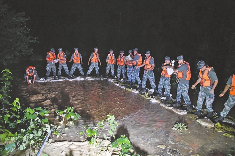 “什么时候有困难什么时候上,哪里有危险我们就到哪里。”顶着滂沱大雨,副旅长魏俊指挥增援官兵向新台子方向集结。