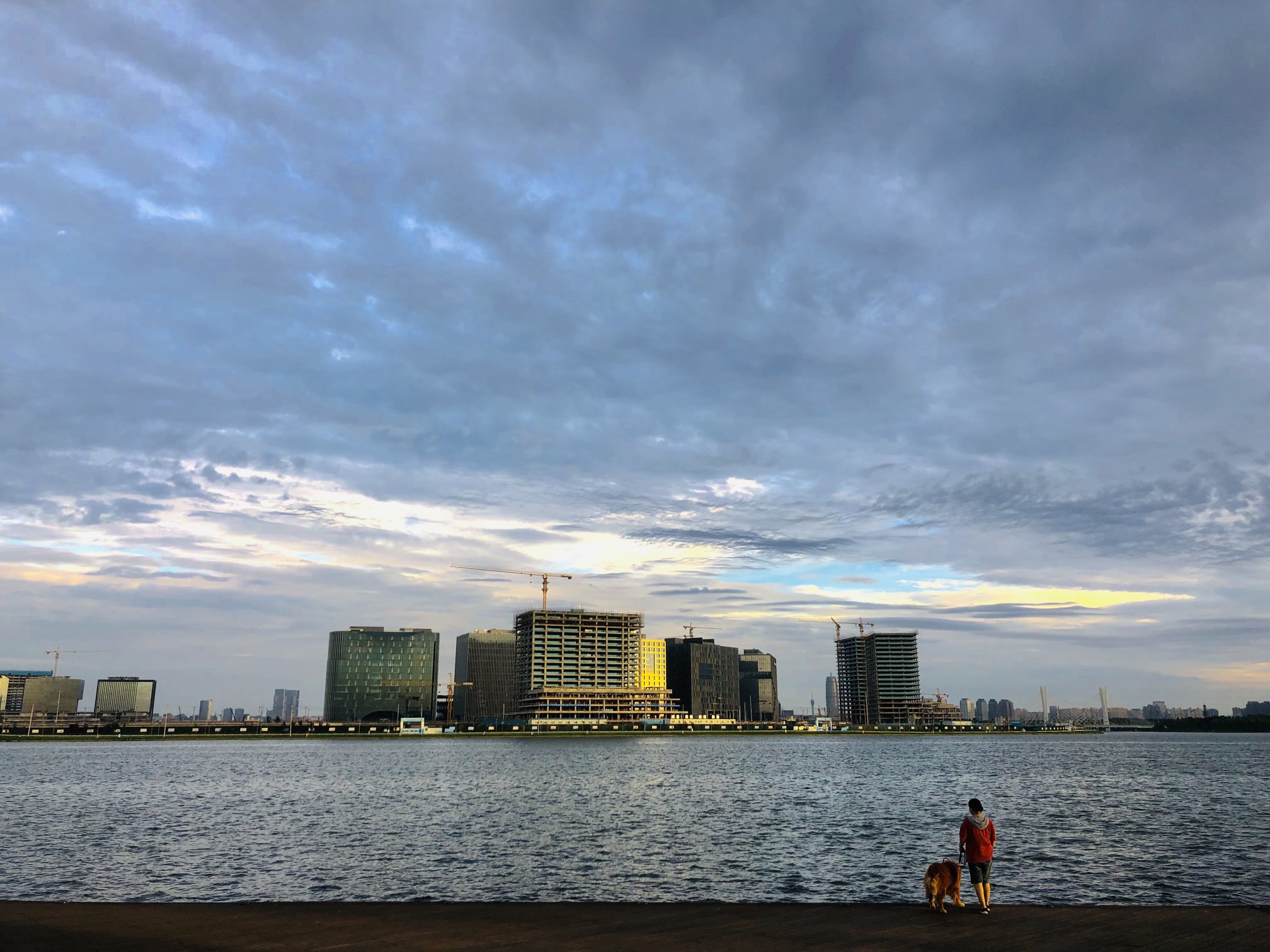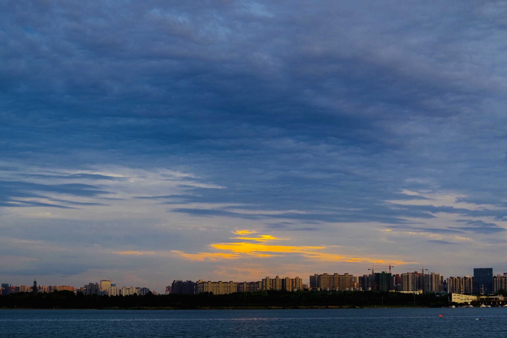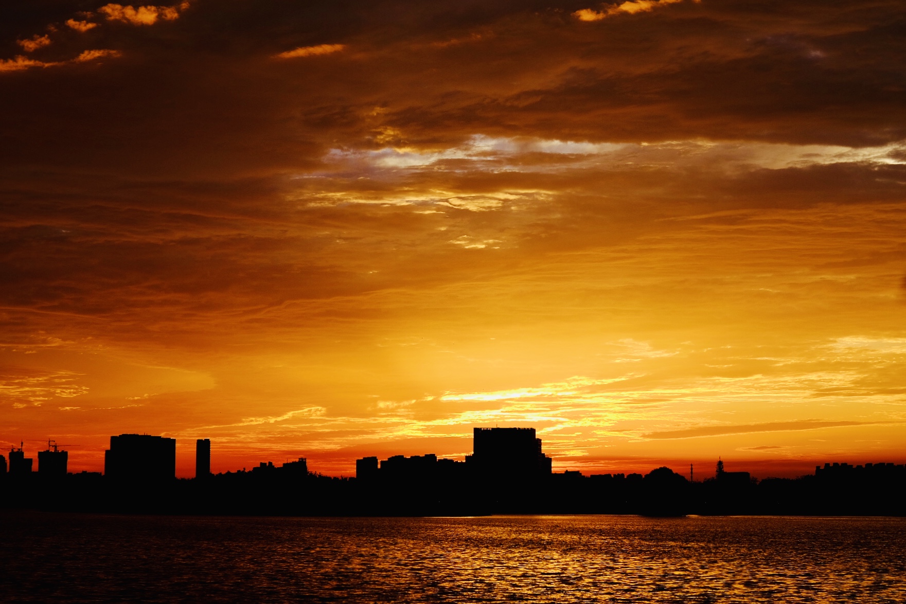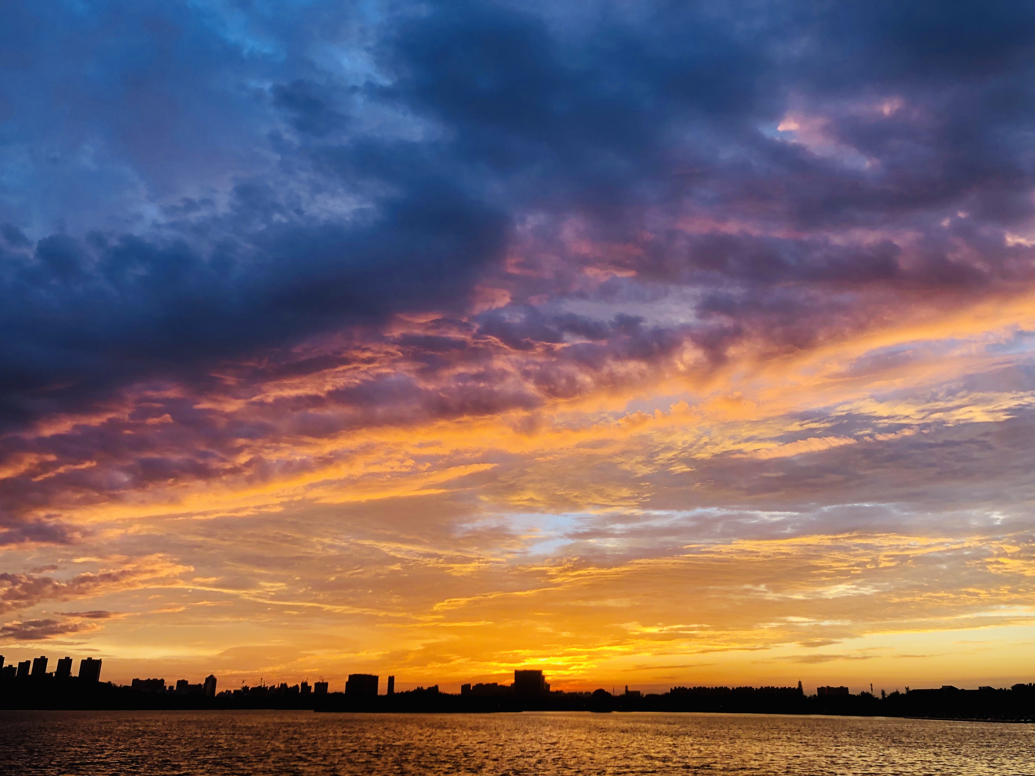 郑州北龙湖上空绚丽的晚霞