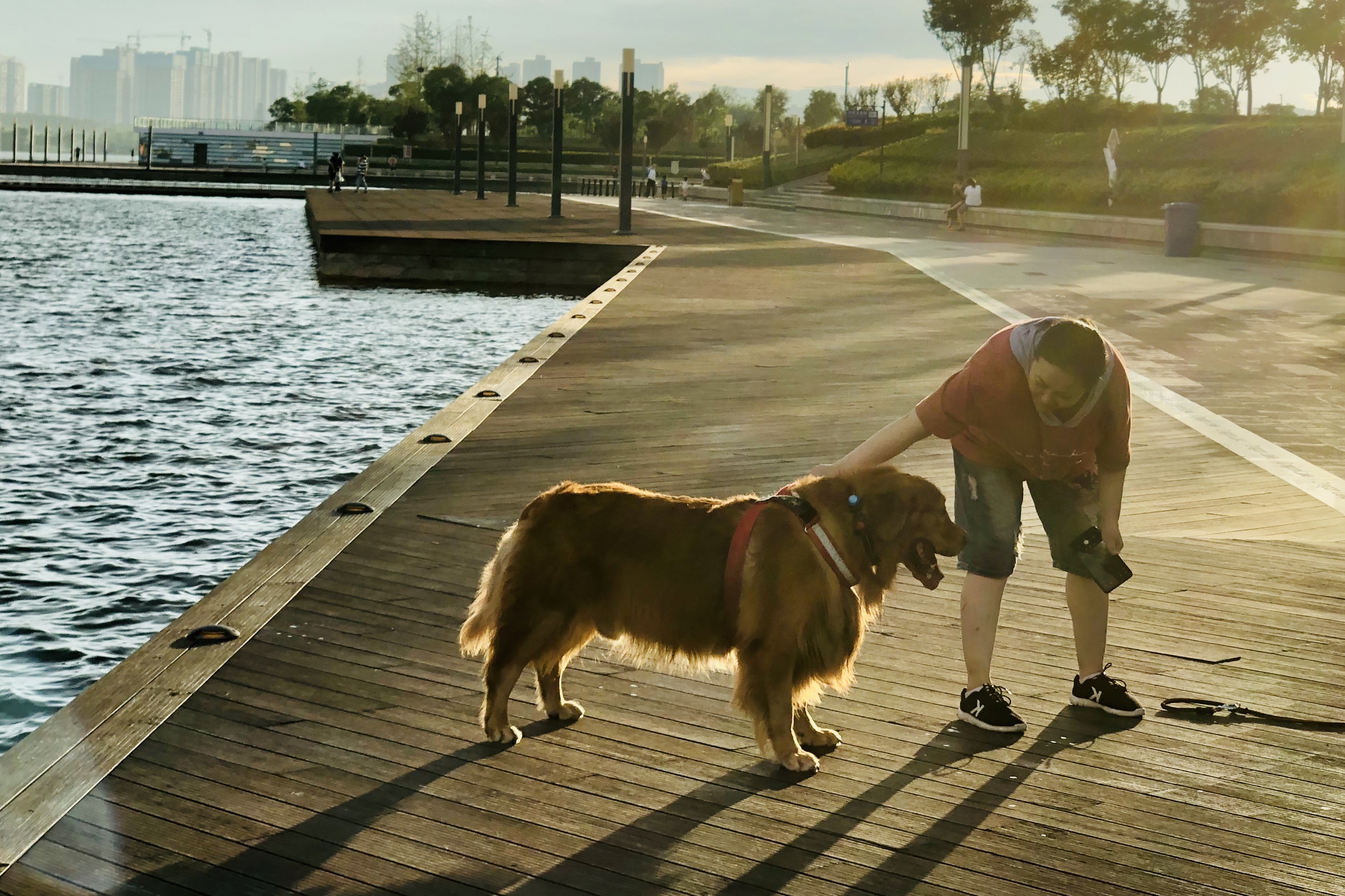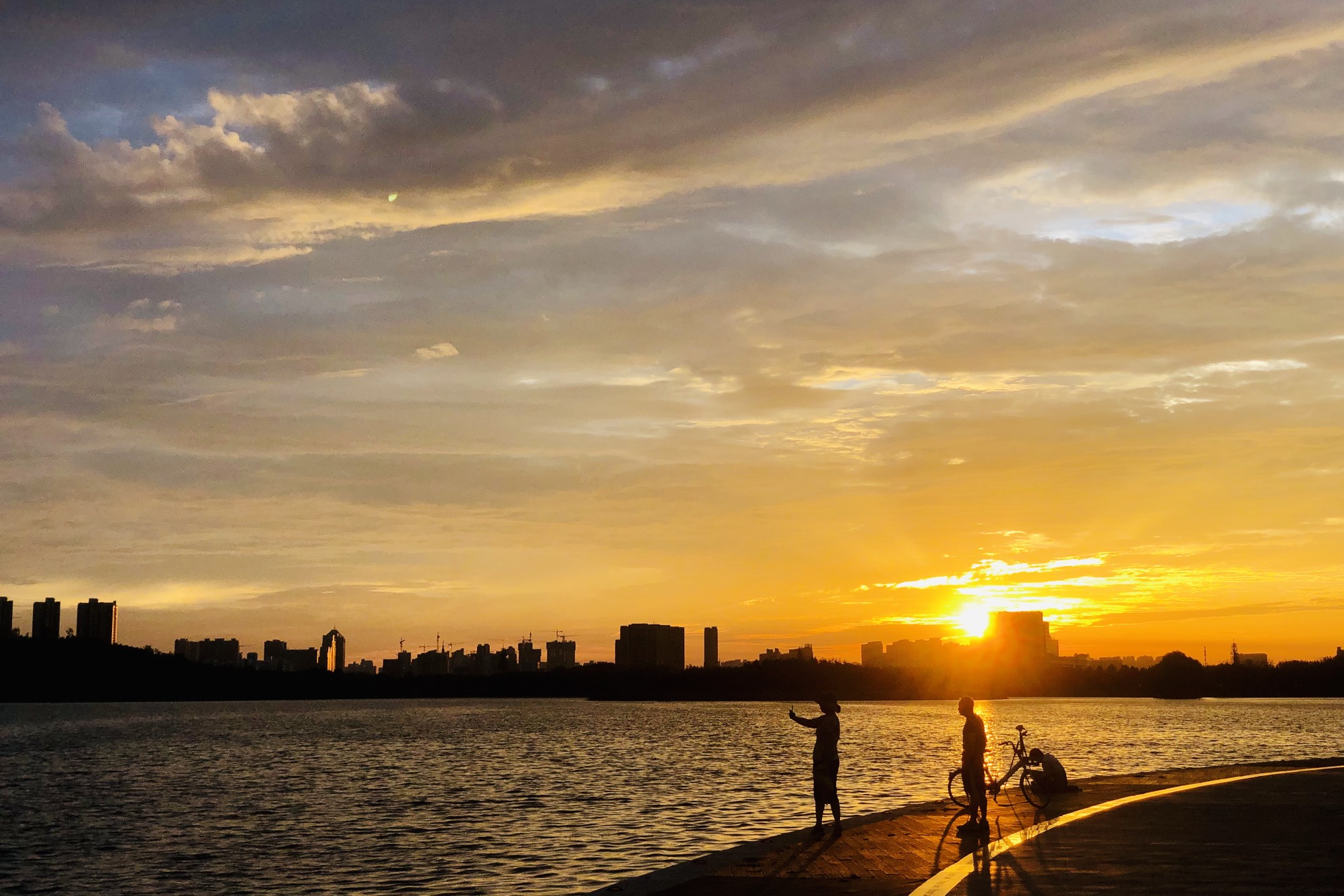 沐浴在迷人晚霞中流连忘返
