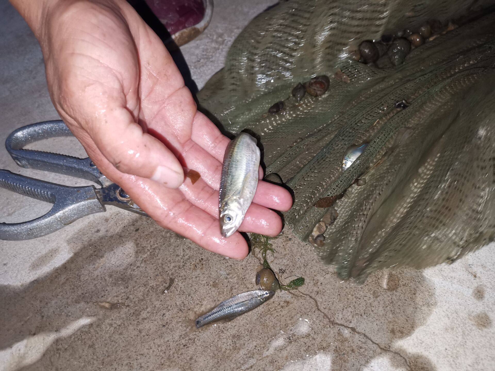 几十条地笼暗藏沙颍河,连火柴长的小鱼都不放过