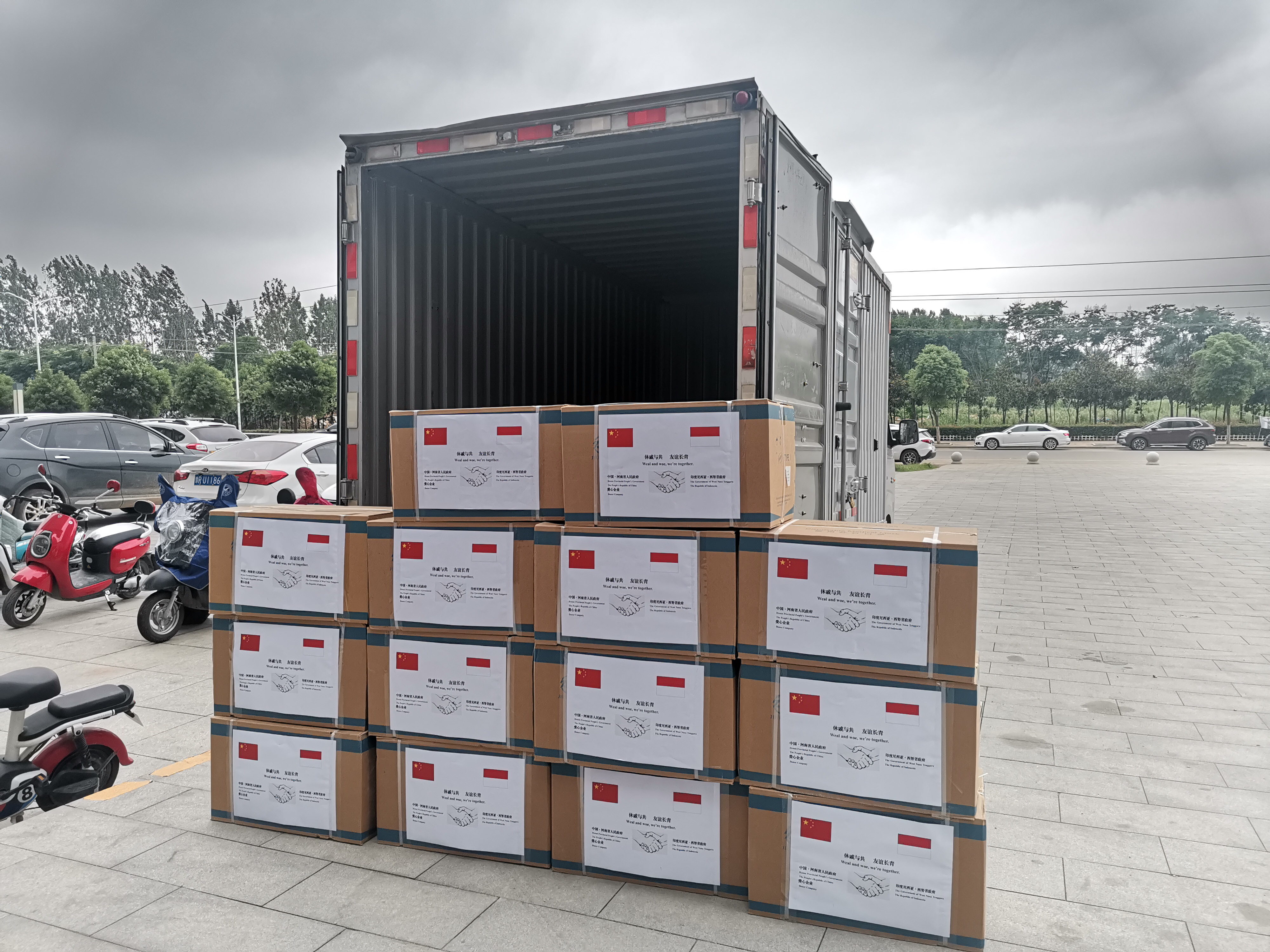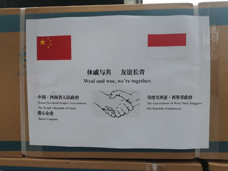 大河网讯(记者 刘杨)8月13日,河南省人民政府联合牧原集团向印度尼西亚西努沙登加拉省(以下简称:西努省)捐赠的5万只医用外科口罩运抵该省首府马塔兰市,该批物资将通过该省政府分发给当地医疗机构,助力一线医务人员抗击新冠肺炎疫情。