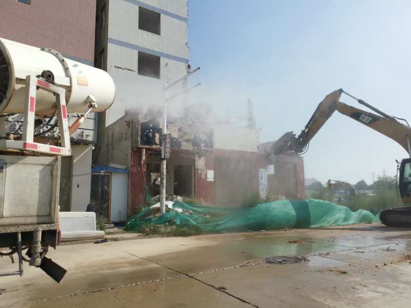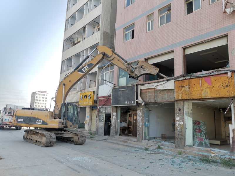 8月26日上午八点,百十来号工作人员在金水区花园路与三全路交叉口向西300米路北柳林村集体土地见证着两处违法建筑的拆除。八层违法楼房上还能看到旧时的门头 ,有经营网吧的,有箱子大全的。工作人员叫来搬家公司,一件件地把值钱的东西往外搬。随后,伴随着对讲机里一声令下的“拆”,扬尘防控车和勾车同时启动。