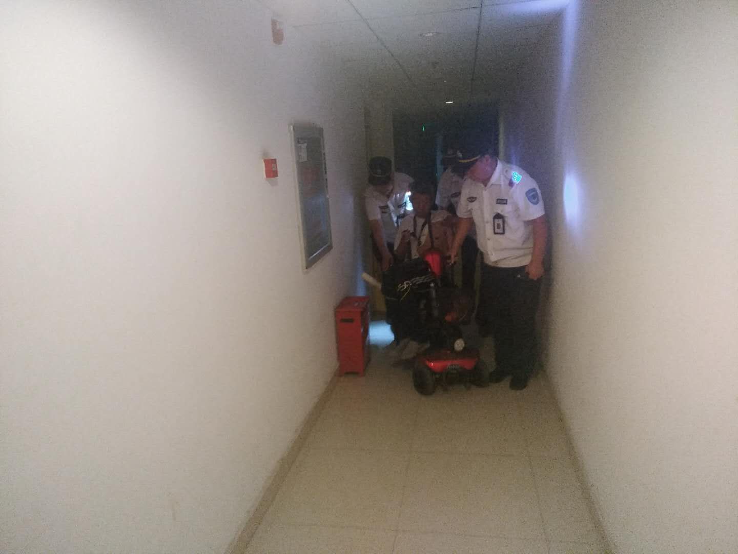 队员推着该残疾老人将其安全送回家中,并联系其子女要多加关心老人,平时闲的时候多回来看看,同时也提醒老人有困难及时联系社区和巡防队员。