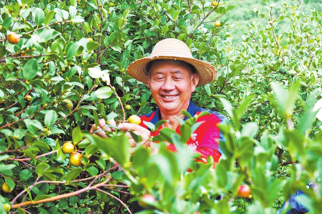 登上观景台远眺,山挨着山、岭连着岭,油茶林绵延起伏,好像绿色的海洋,随风漾起幸福的波浪。