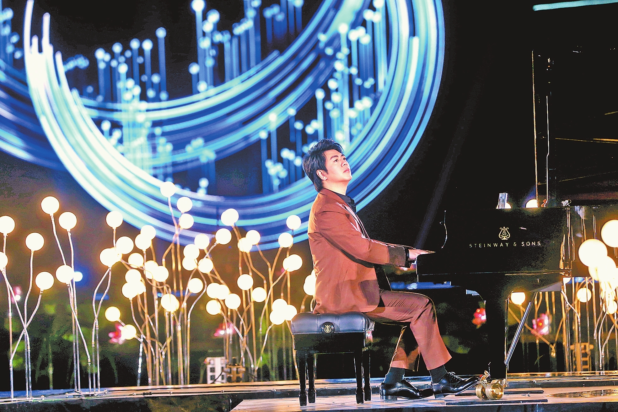 著名钢琴家郎朗在央视中秋晚会现场进行节目录制。本报记者王铮摄