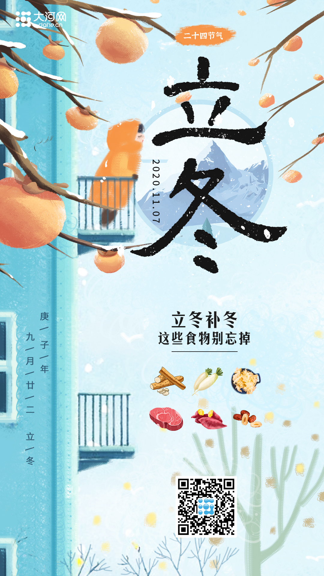 “立冬”在每年的11月7日或8日,是24节气的第19个节气。我国古时民间习惯以立冬为冬季的开始。我国古代将立冬分为三候:“一候水始冰;二候地始冻;三候雉人大水为蜃。”“立冬”和“立秋”一样是古代社很重要的节日。