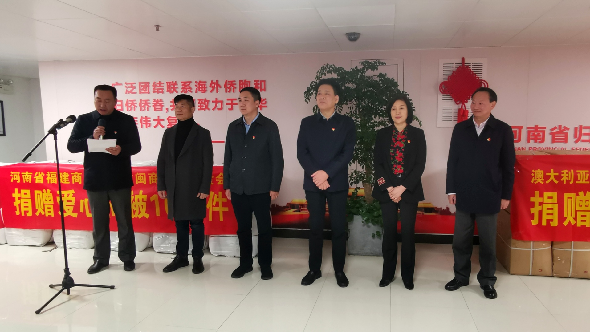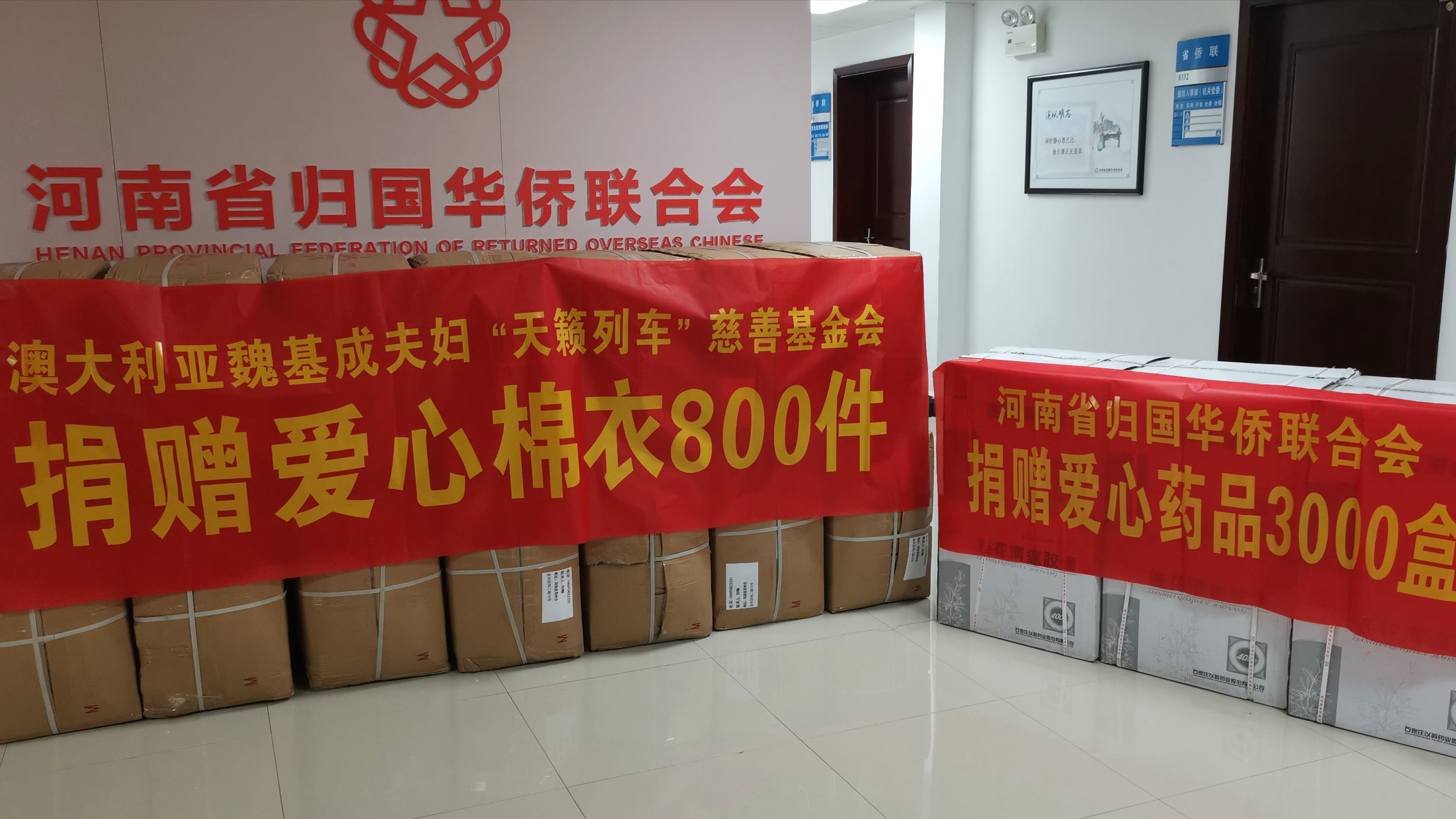 本次捐赠有澳大利亚魏基成夫妇“天籁列车”慈善基金会捐赠的爱心棉衣800件,河南省福建商会、河南省闽商慈善基金会捐赠的爱心棉被1000件和爱心棉衣100件,省侨联捐赠的药品3000盒。这些爱心捐赠将送往淅川县、台前县、卢氏县、嵩县四个县及郑州大学等。