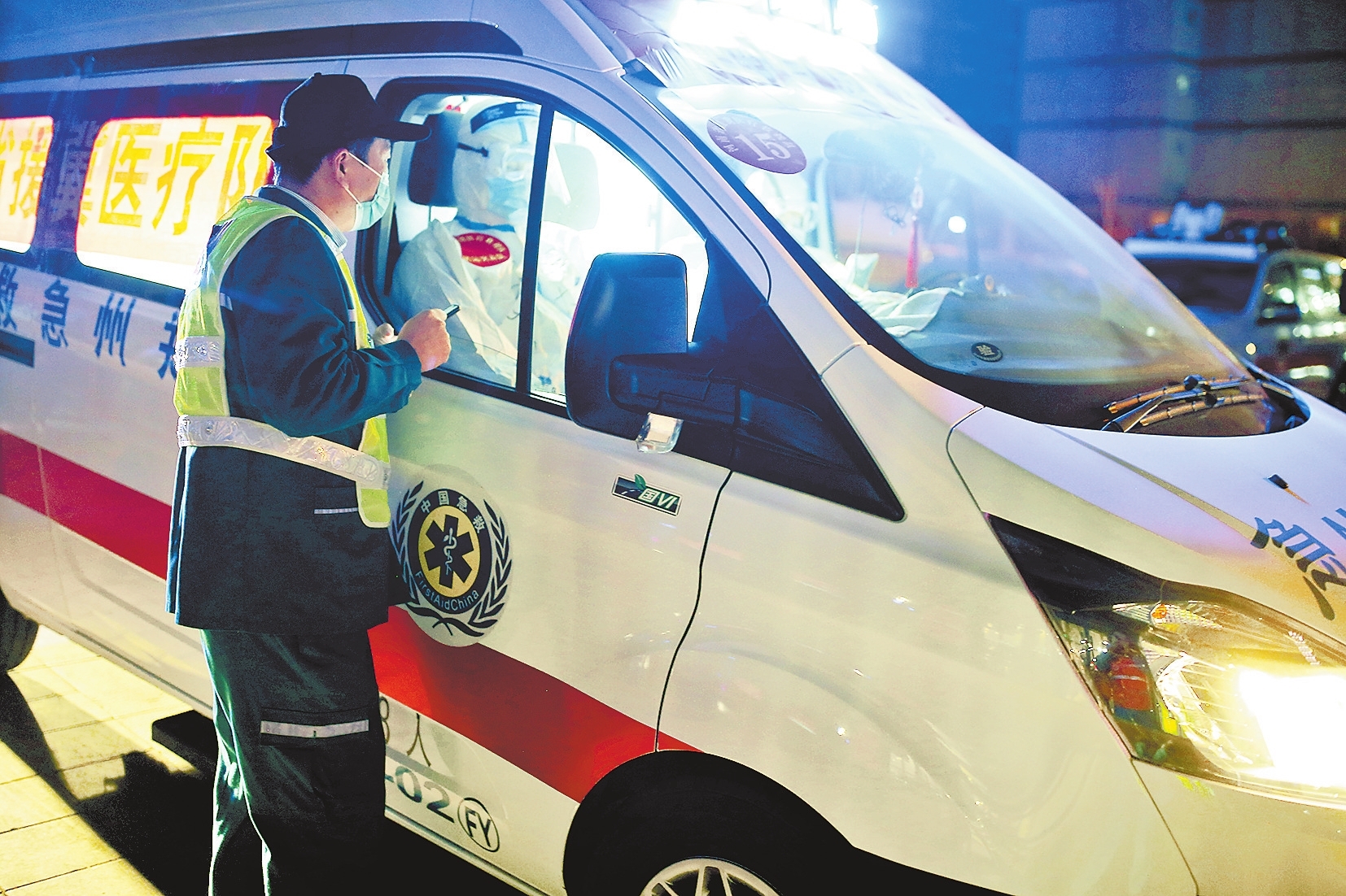在此次援冀医疗转运任务中,刘阔厦有着双重身份,不仅是急救员,还是驾驶员。准确定位导航,选择最合适的路线,用最快的速度把病人安全转运到指定地点,这些对于长期工作在急诊一线的他来说早已是轻车熟路。由于疫情期间道路严格管控,路上行程时间还是比他们事先预想的要“漫长”,但途中也收获着满满的感动。“每到一处管控卡点,工作人员仔细检查过后,都会对我们伸出大拇指或以鞠躬致敬,这种无声的语言让我感到‘河北河南就是一家,没有什么过不去的坎儿’。”正是这种强大的力量激励着刘阔厦和他的队友。在石家庄开展工作的这几天,他们接诊的患者不仅有85岁高龄的老人,还有1岁多的小孩子。在河南医疗队队员的悉心呵护下,患者全部被安全转运到了指定医院接受医疗救治。