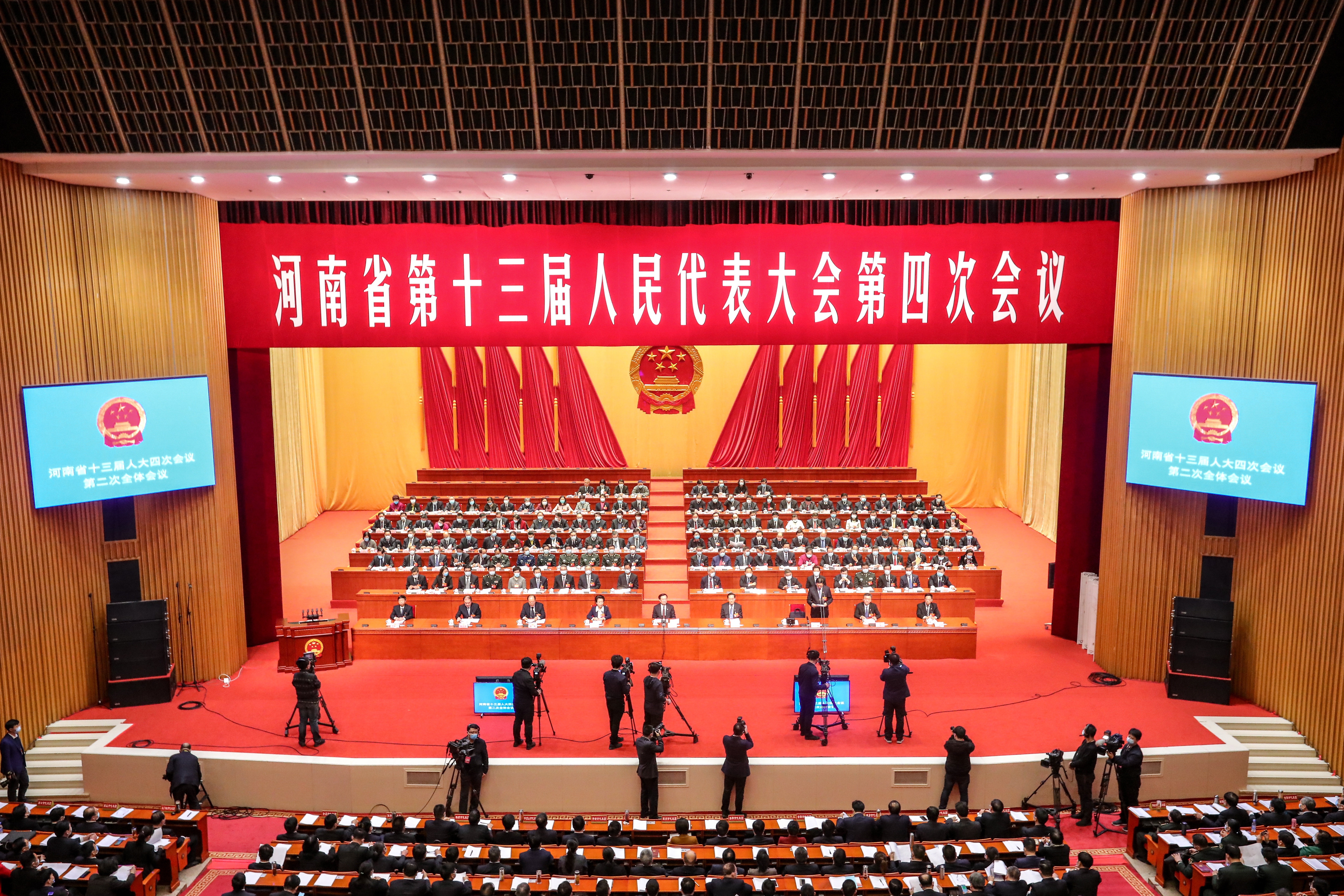 1月19日下午,河南省十三届人大四次会议第二次全体会议召开。