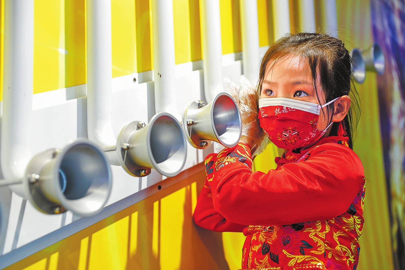 小朋友在宝丰县科技馆体验“墙壁上的音符”。何五昌摄