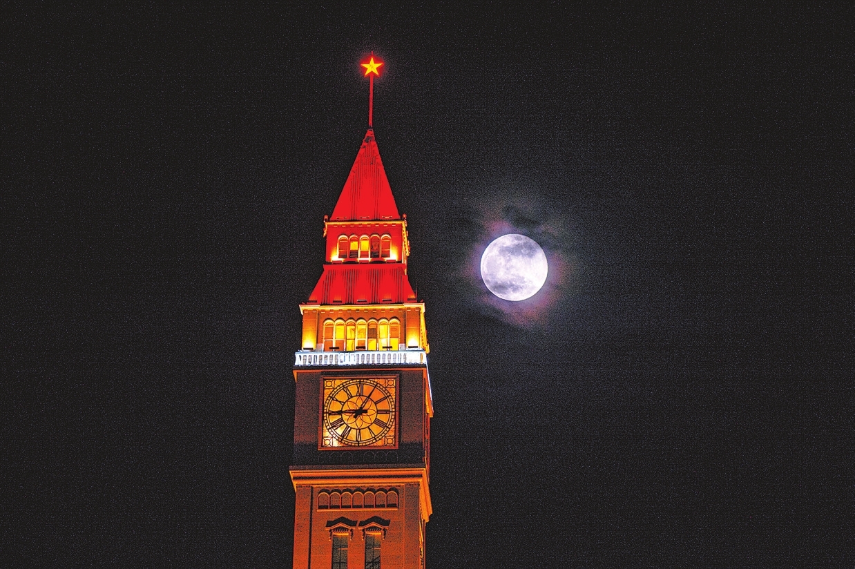 今年以来的首次“超级月亮”天象于4月27日晚上上演。图为“超级月亮”现身鹤壁市淇滨区夜空。张志嵩摄