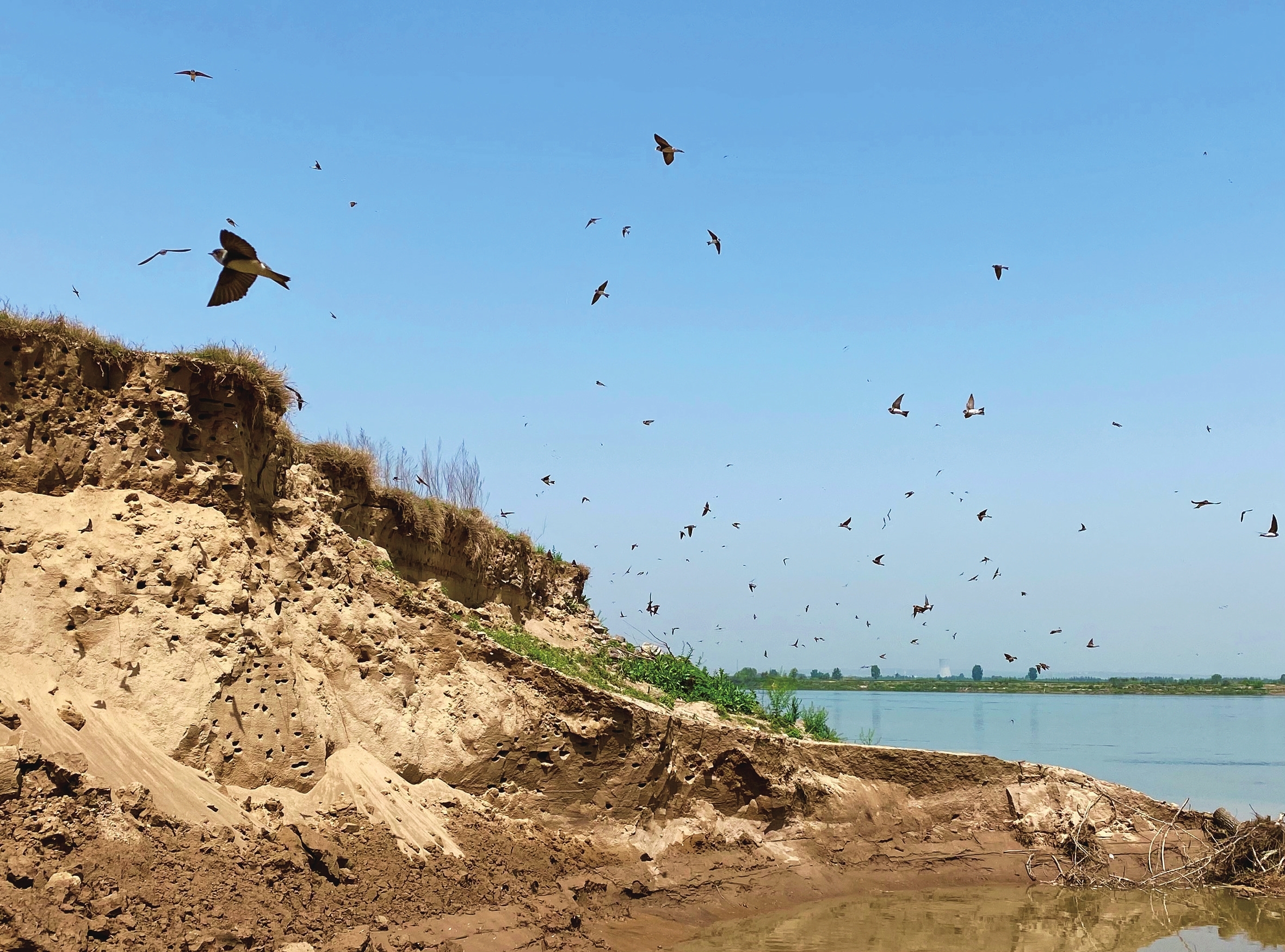 站在黄河绿道向黄河眺望,无数个光点在河道上方翻飞,同时传出“喳喳喳”的喧闹叫声。走近一看,才发现是成千上万只崖沙燕在来回飞翔着。