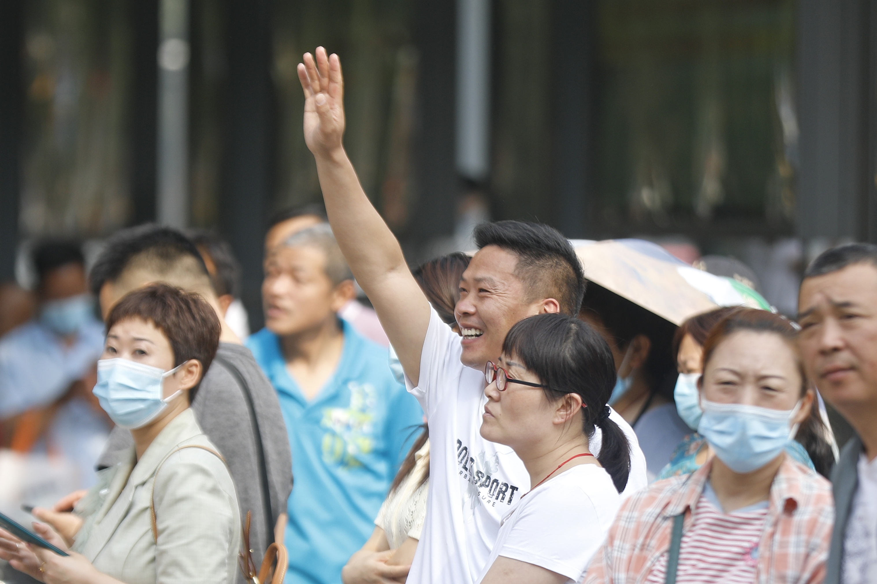 家长向进入考场的孩子挥手