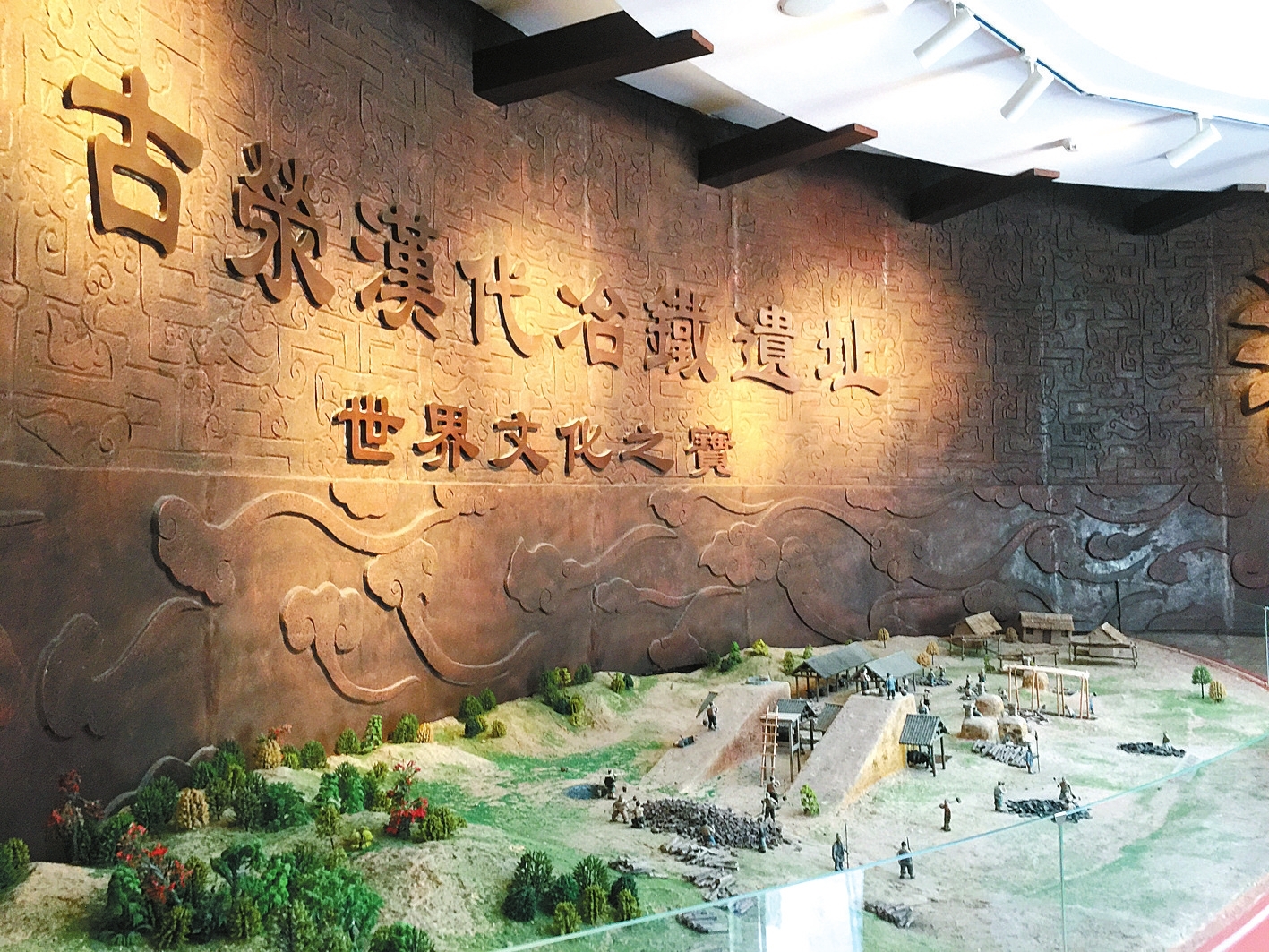 那么,这处遗址是怎样发现的呢?袁月介绍说,1965年,当地村民在对土地进行平整时,发现一处地方的土质极其坚硬,还发现了大量的赤铁矿石、炼渣和一些铁器。后经考古钻探,确定此处为汉代冶铁遗址。后来直到1975年,才开始正式发掘,在遗址上共发掘出大型炼铁炉两座,炉体有效高度6米,容积50立方米,日产生铁约1吨,是我国目前发现的汉代容积最大的炼铁竖炉。围绕冶铁炉还发现有矿石加工场、四角柱坑、水井、水池、陶窑等设施,显示出以冶铁炉为中心组成的一个完整的冶炼系统。