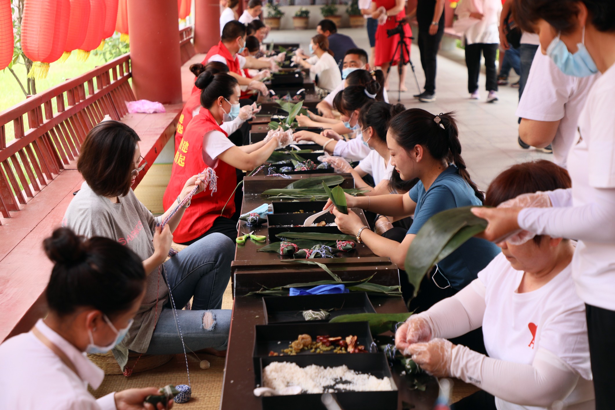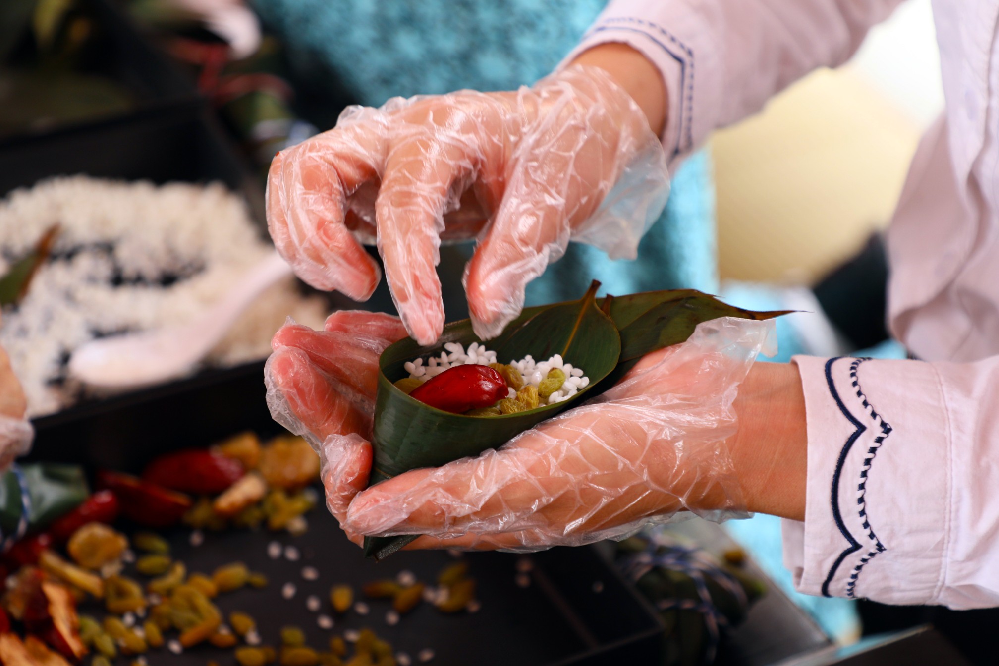 游客体验包粽子