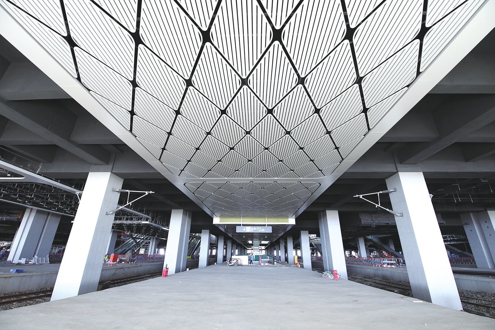 郑州南站站房装饰装修融入了仙鹤、莲花及黄河文化等元素