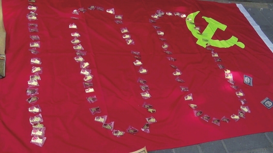 “今天这个展览,是马上到建党一百周年了,我专门从藏品里头选了百十件红色藏品,一大早就来郑州,办这个展览。”
