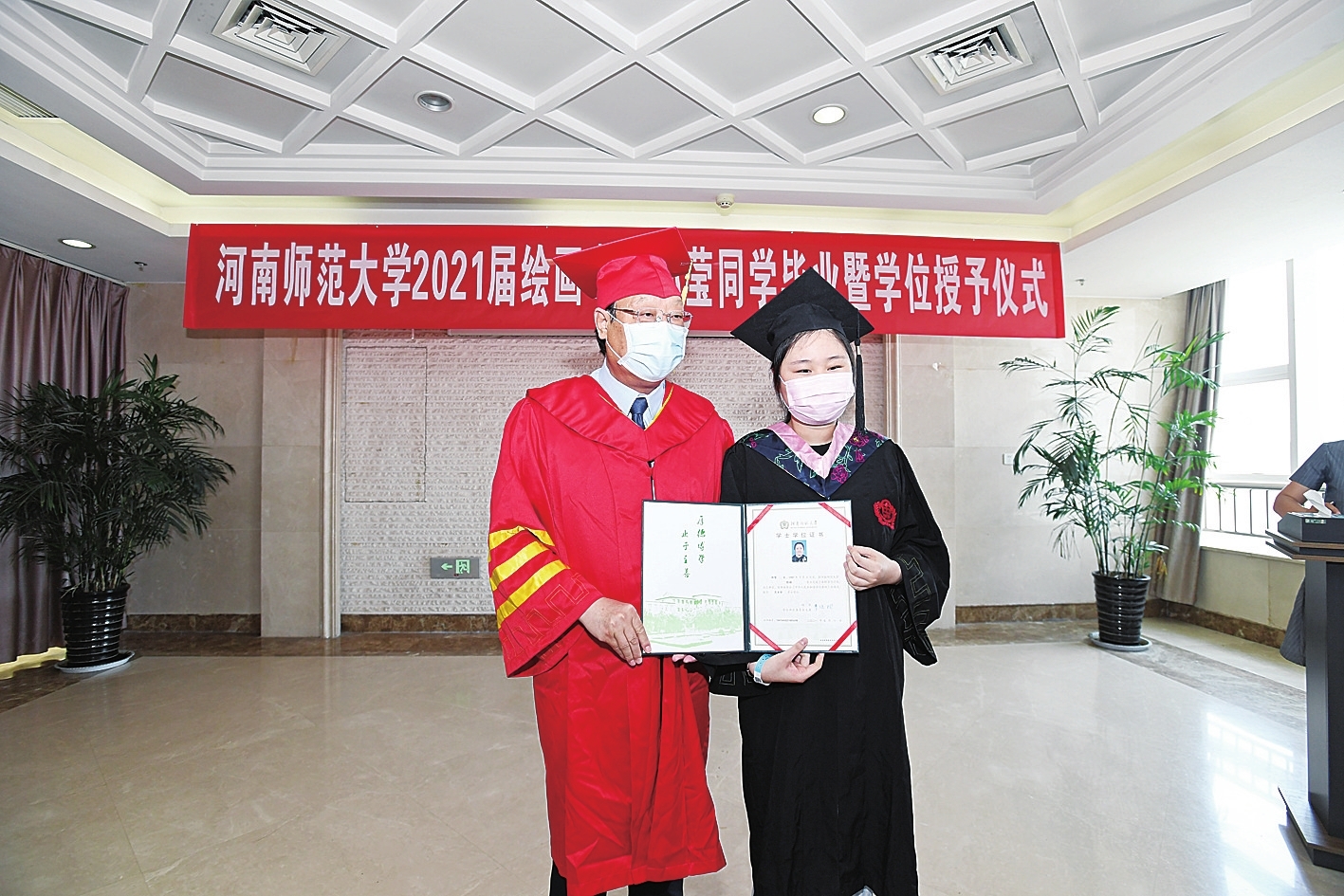 河南师范大学党委书记赵国祥给孙莹颁发学位证书